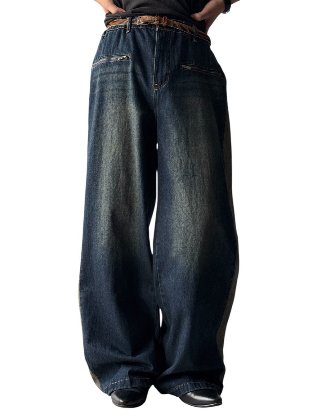 Sideline wide silhouette baggy denim pants