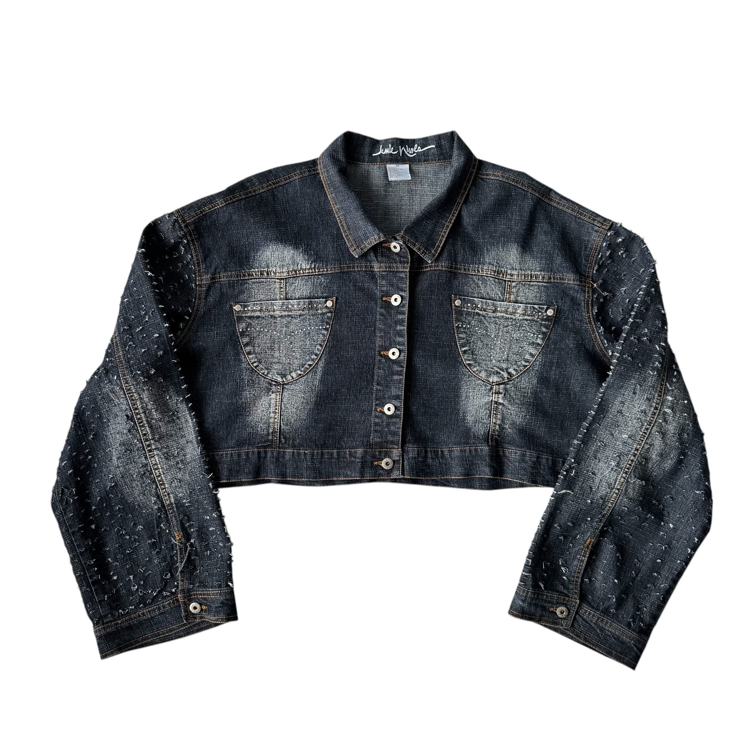 ♾ JAMIE NICOLE ♾ rhinestone damage short length denim jacket siz34
