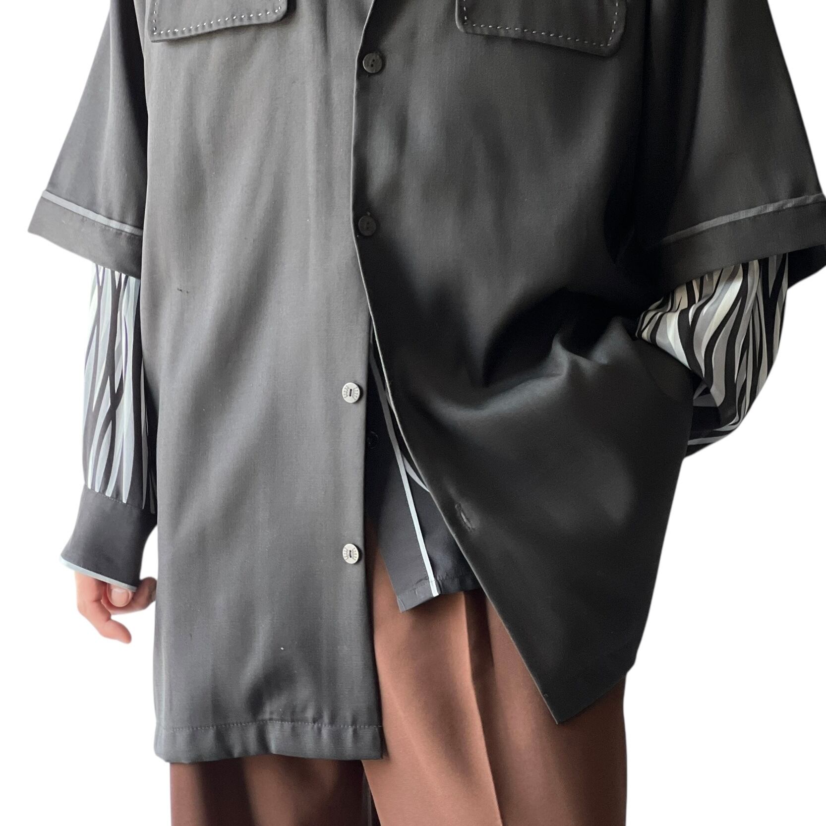 Pocket design H/S open collar shirt