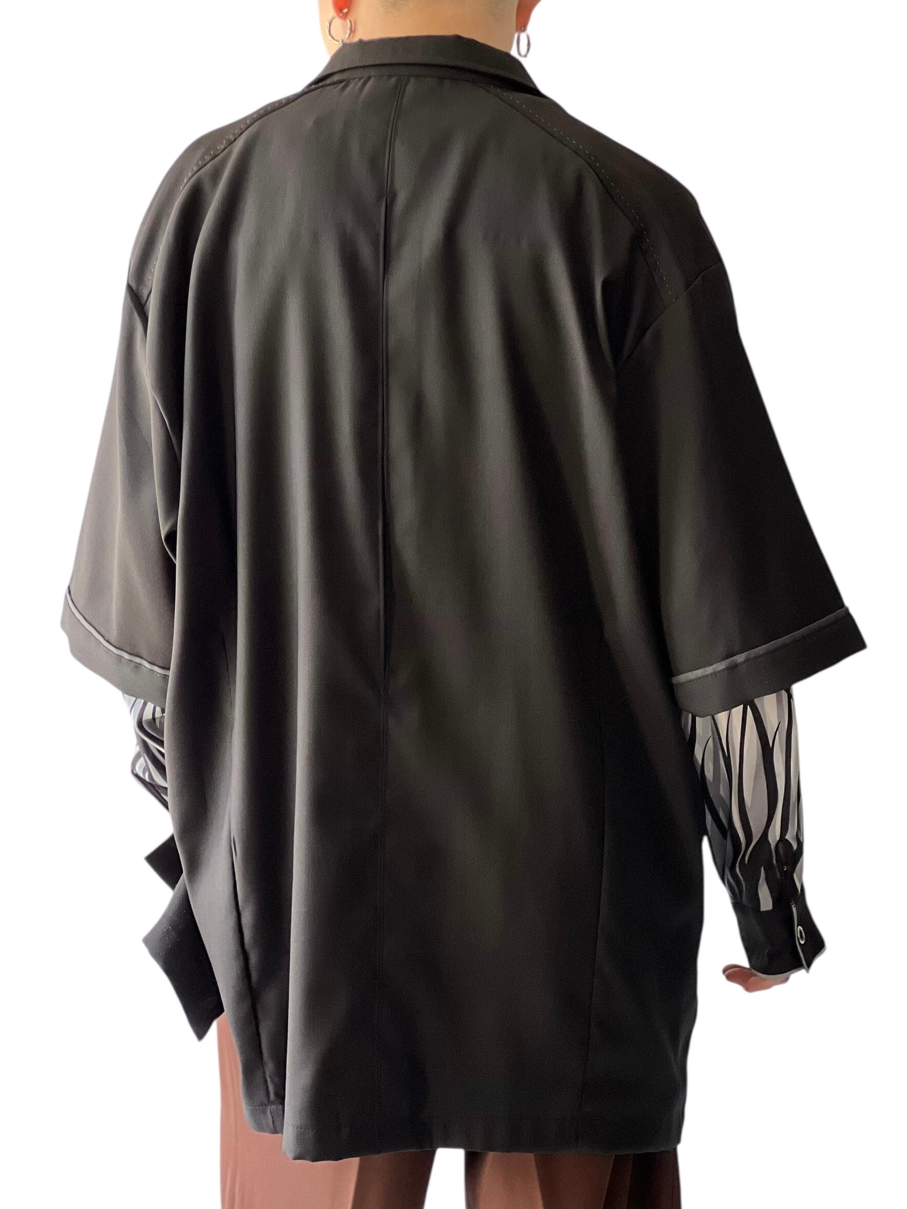 見栄えのいいダブルのフラップポケットに、レーヨンギャバの落ち感シルエット最高な黒シャツ‼️