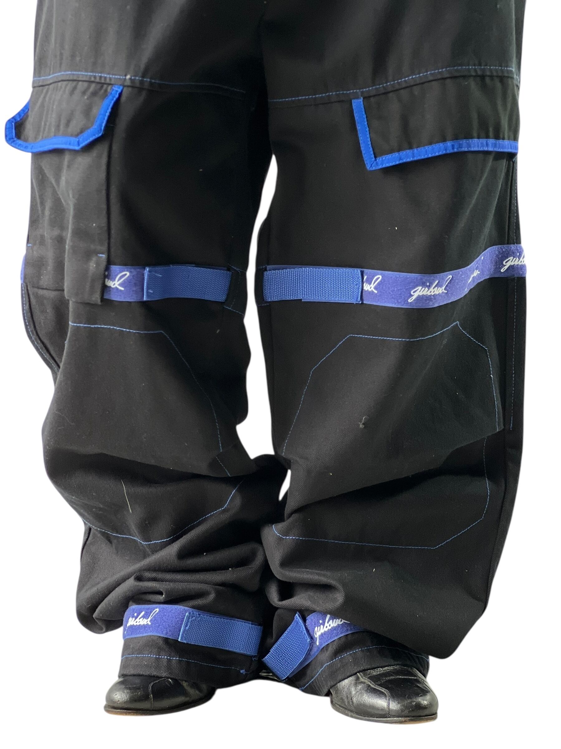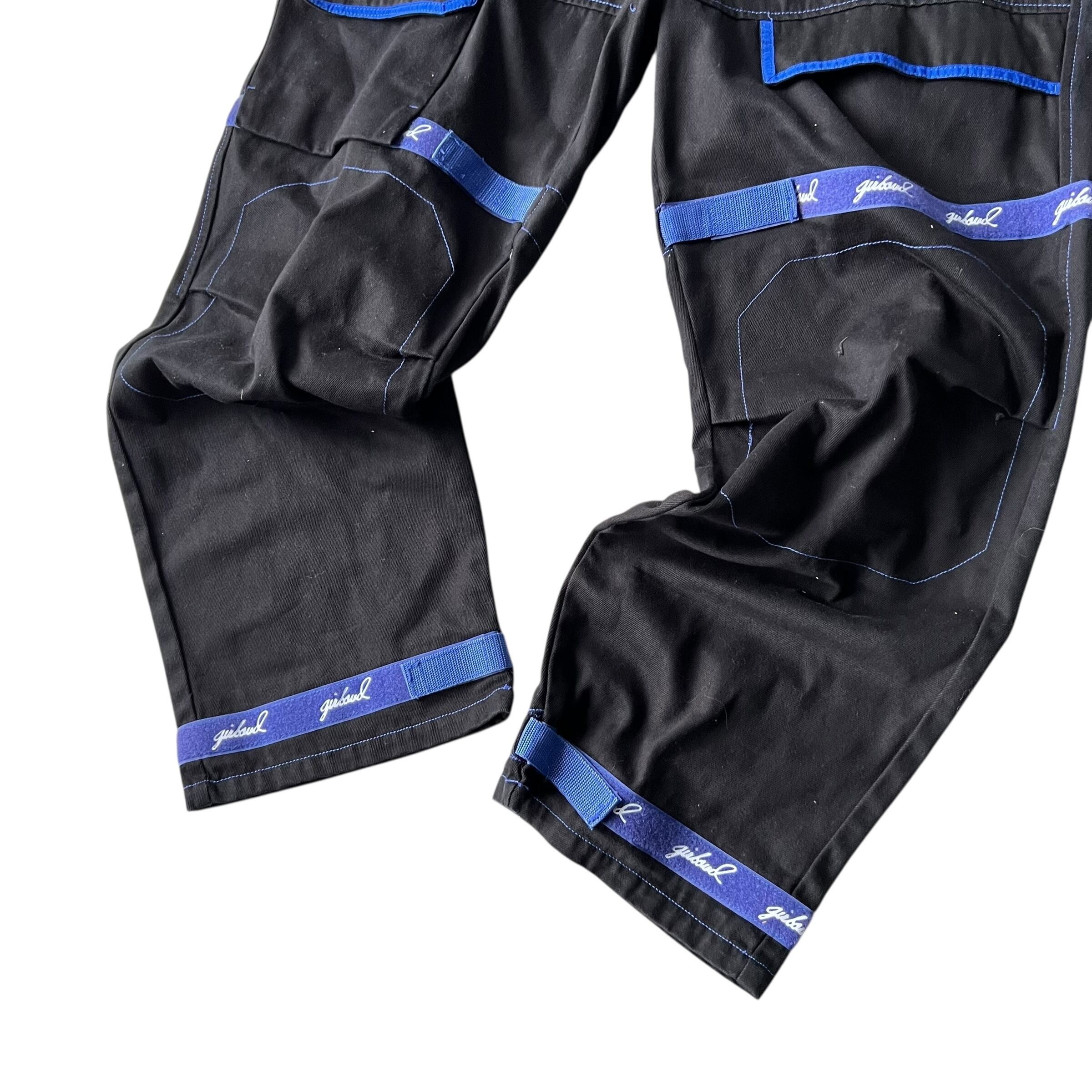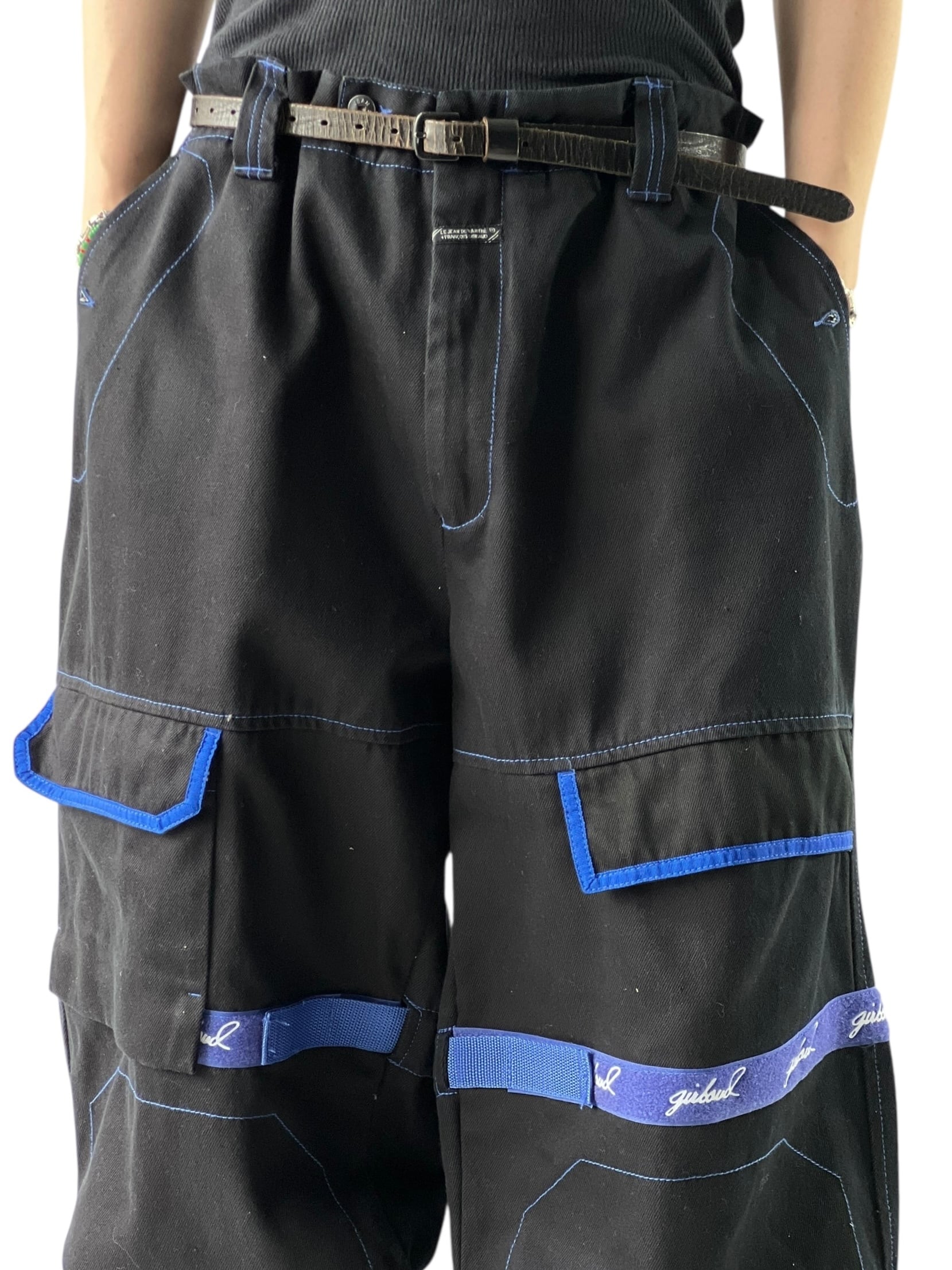 【90's MARITHE FRANCOIS GIRBAUD】 Stitch design Black shuttle tape pants -Blue tape