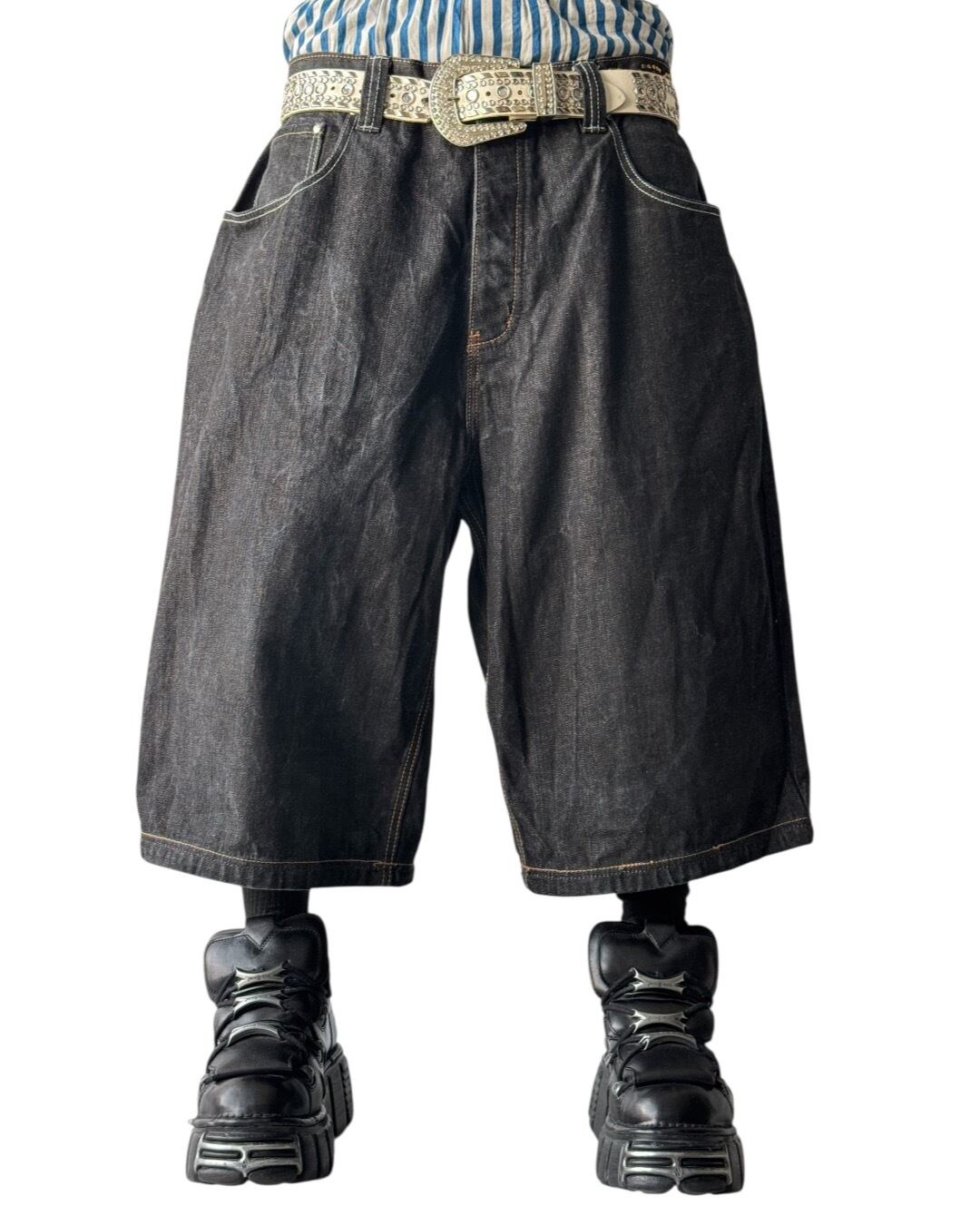 ♾️crown bolder♾️ Design embroidery buggy black denim shorts