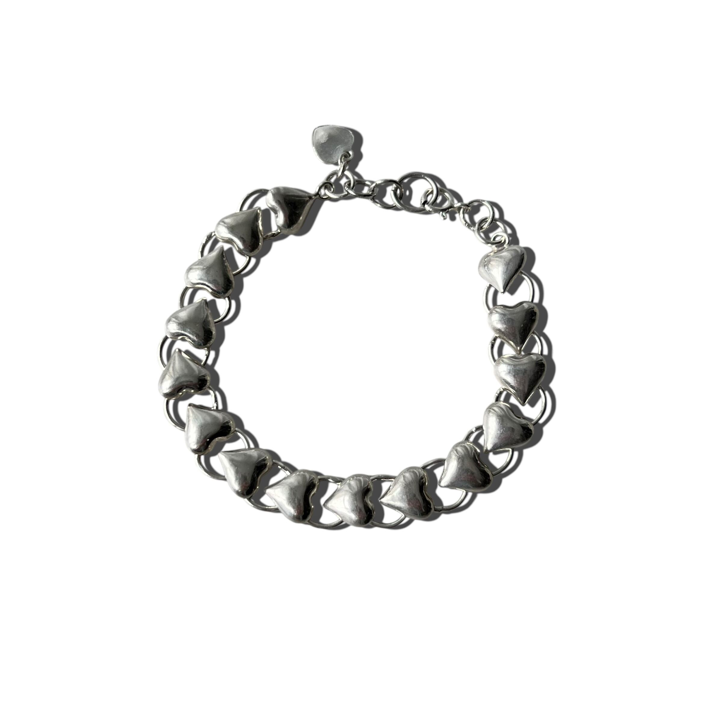 【Sterling silver】 vintage sv925 Hearts link chain bracelet
