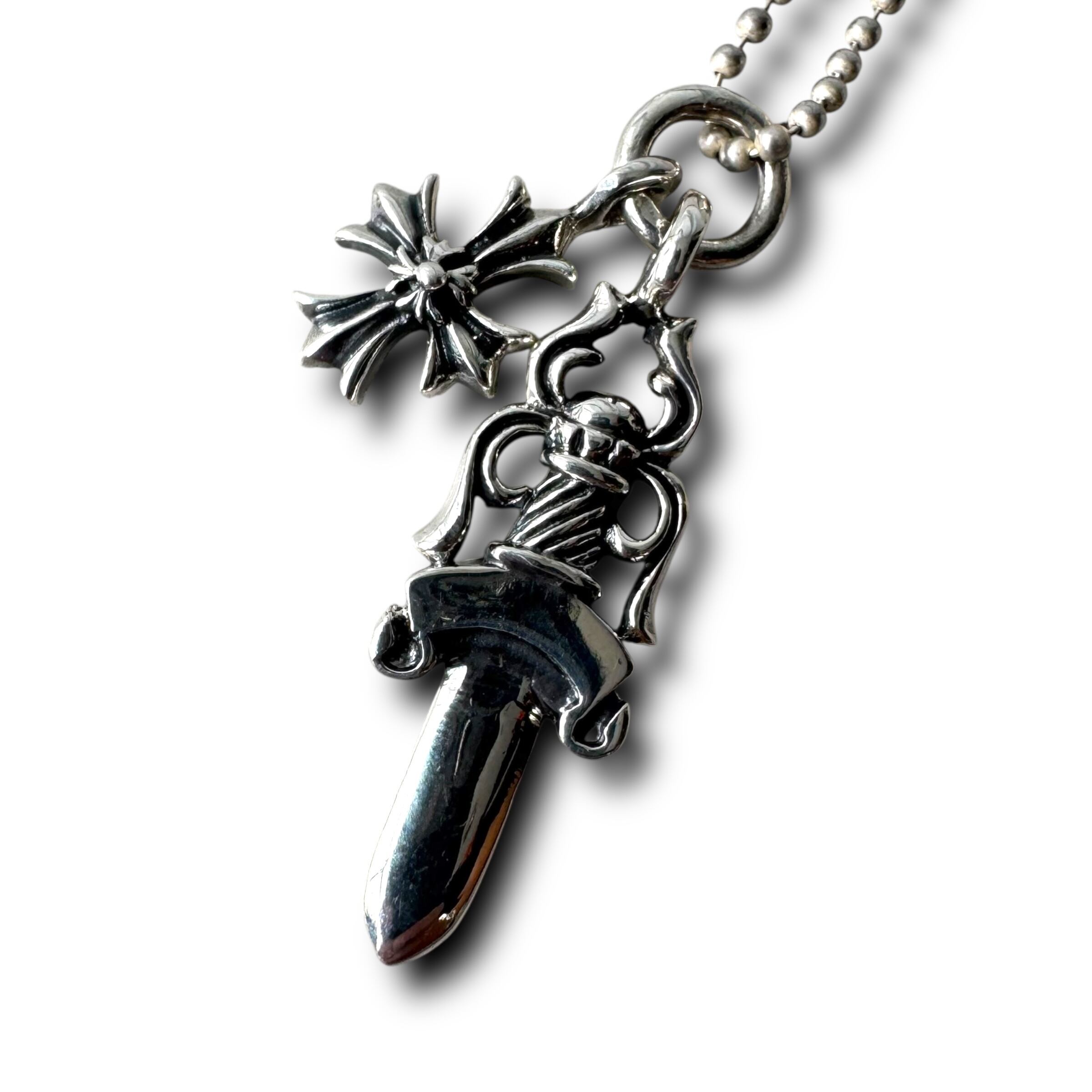 ‼️Special‼️♾vintage silver jewelry♾ dagger cross motif double charm top necklace -sv925-