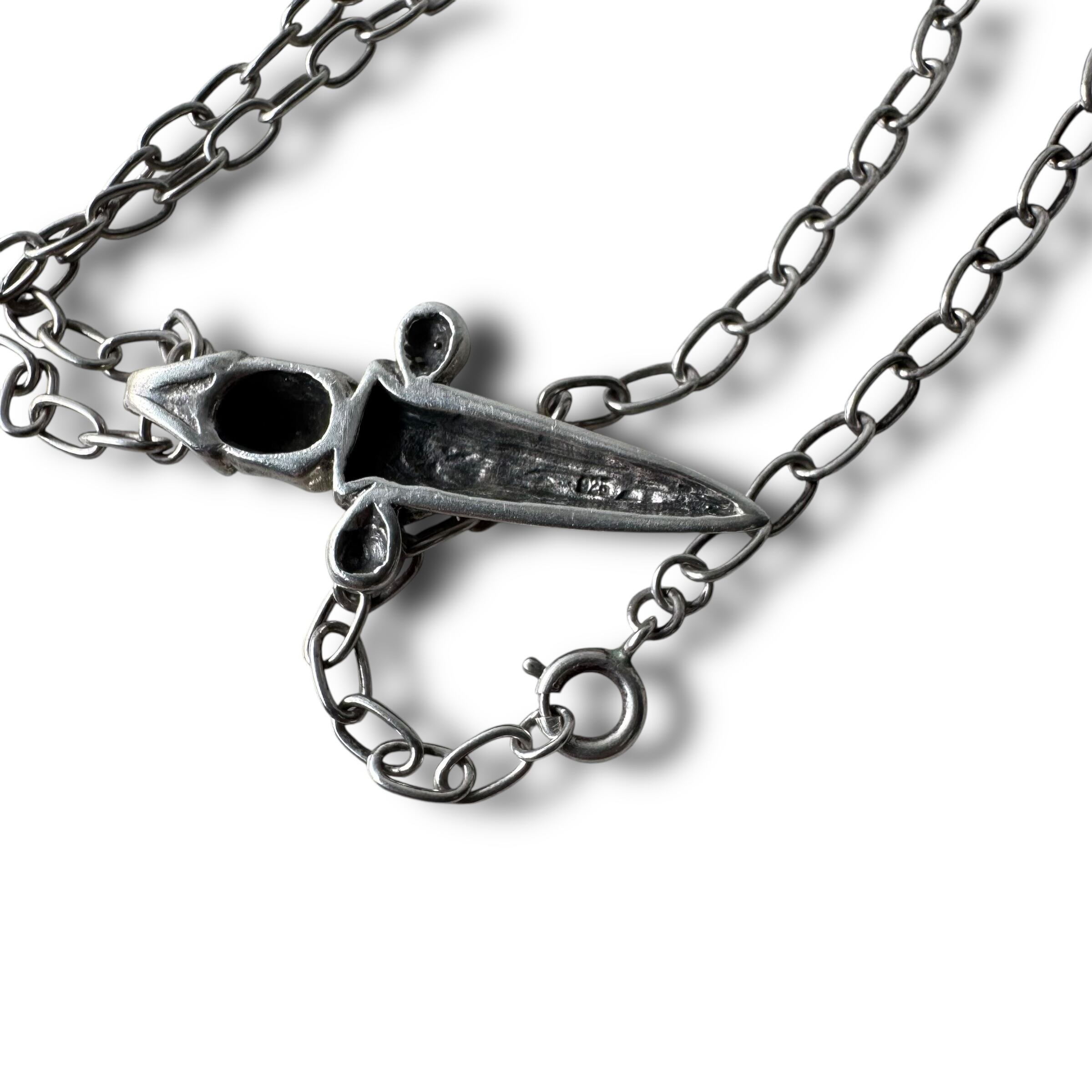 ♾vintage sv jewelry♾ skull dagger motif design sv necklace sv925 ・