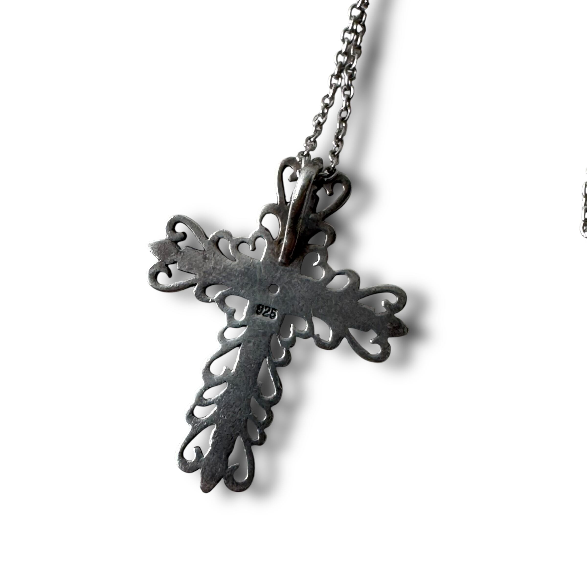 ♾vintage silver jewelry♾ vtg cross motif design pendant top necklace sv925