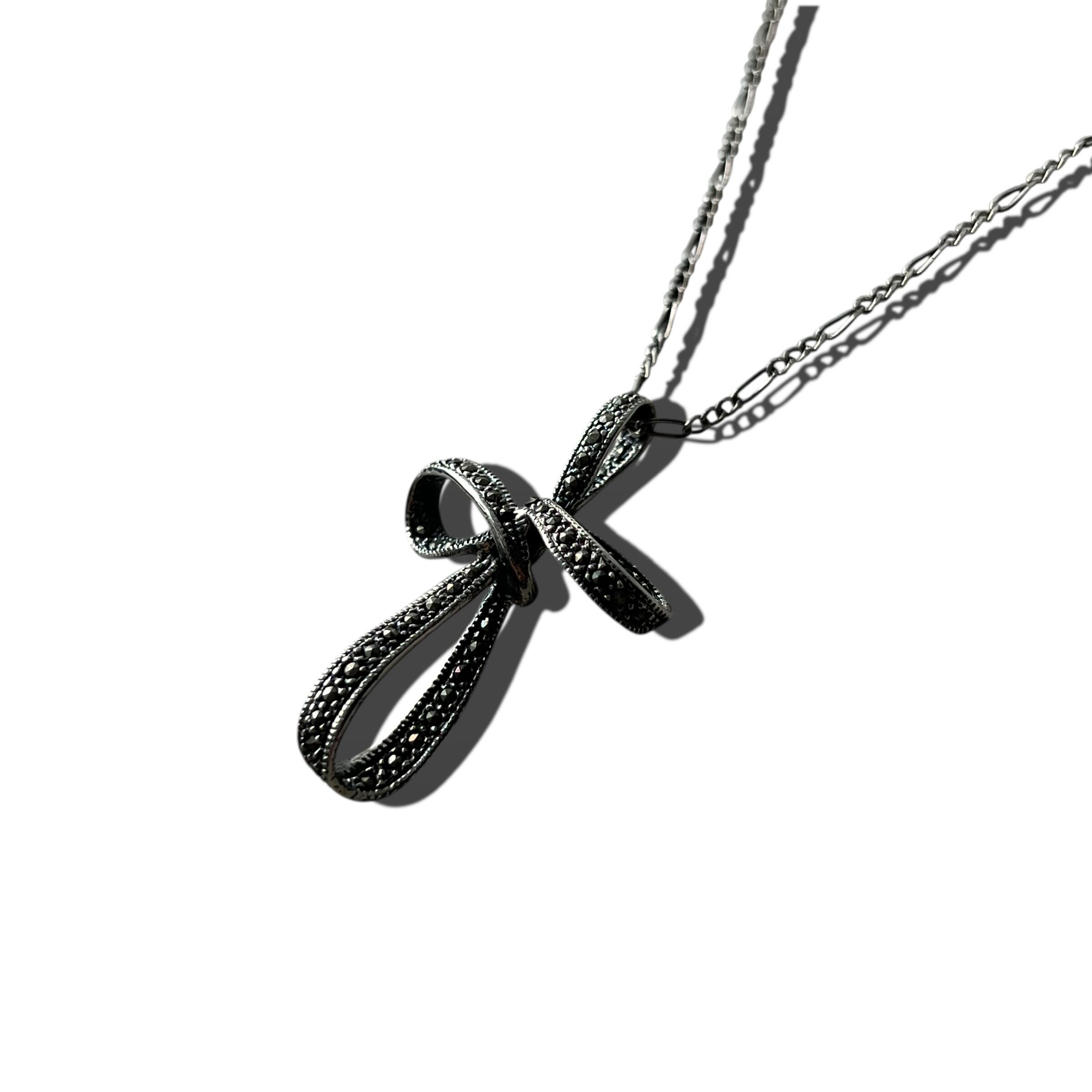 立体的にリボンのようなデザインのクロスがあまりほかには見ないデザインシルバーネックレス入荷‼️✨