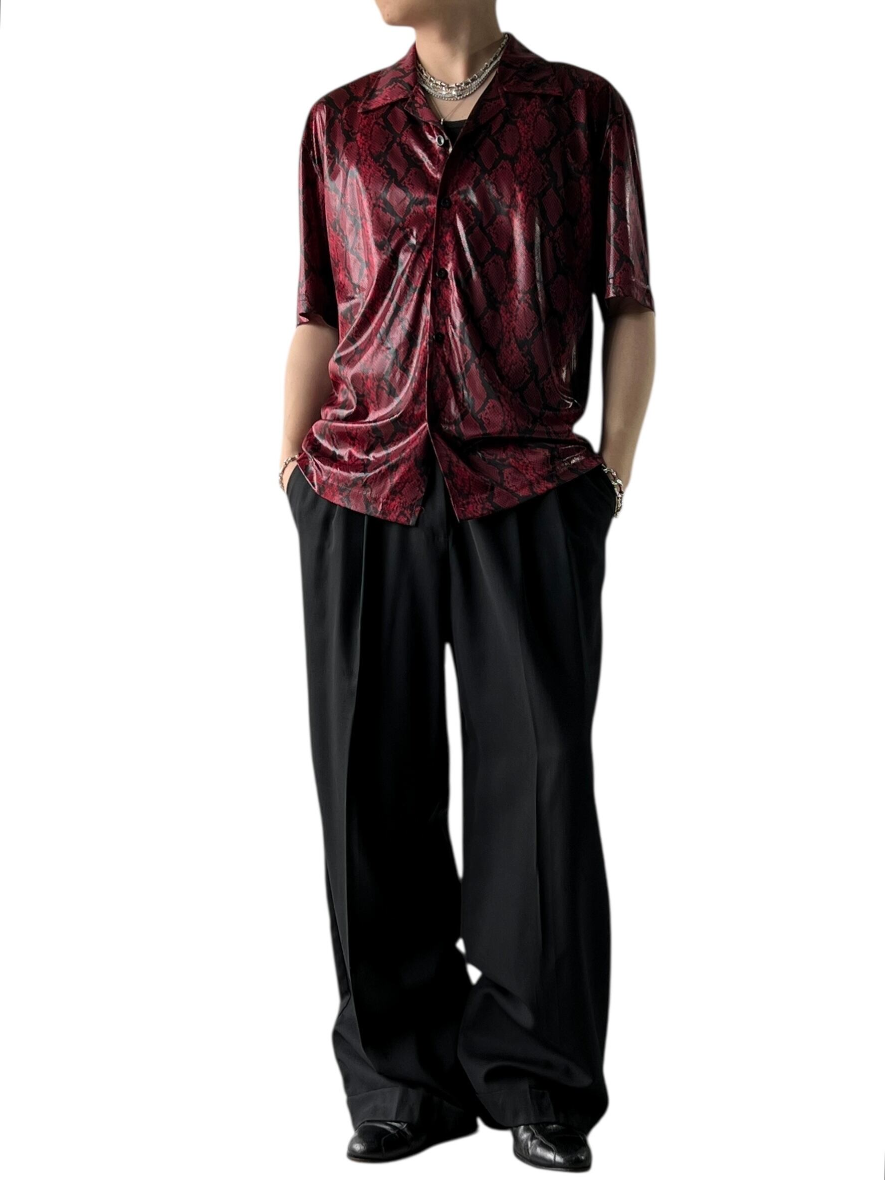 【Pop icon】MADE IN U.S.A. Python pattern open collar shirt