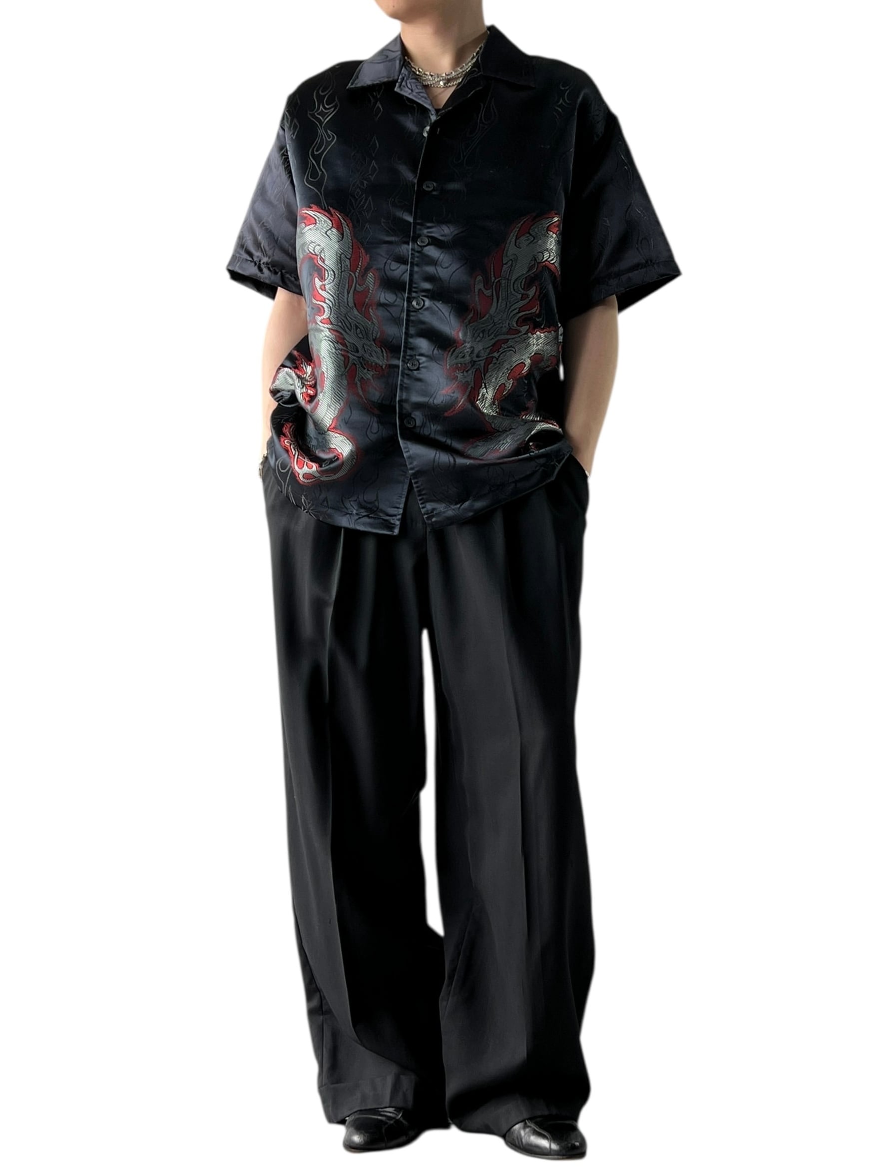 【STREET CULTURE】Rayon Nylon S/S Satin open collar shirt / dead stock