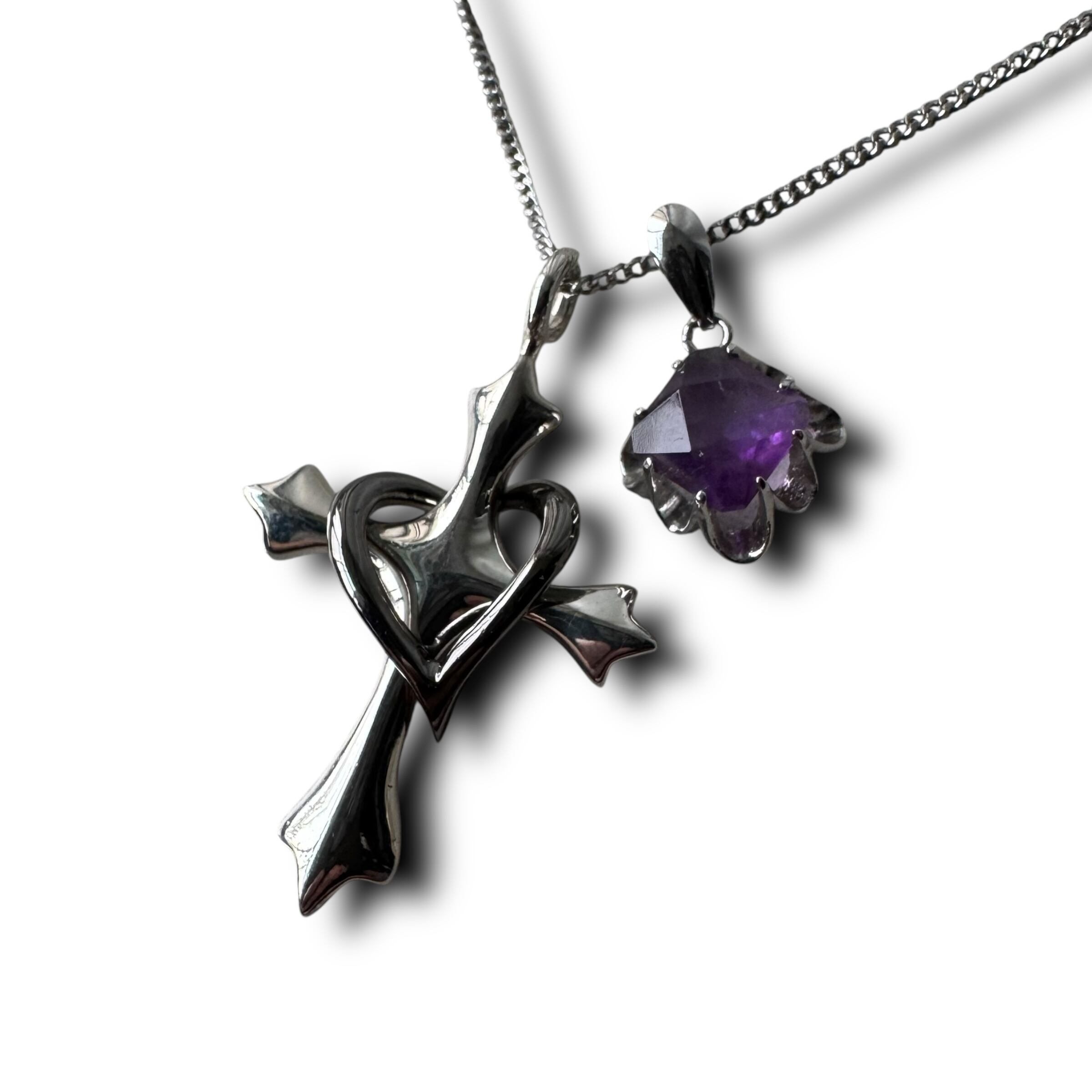 ♾Vintage Silver Jewelry♾ "cross×heart×stone" triple combination design necklace sv925
