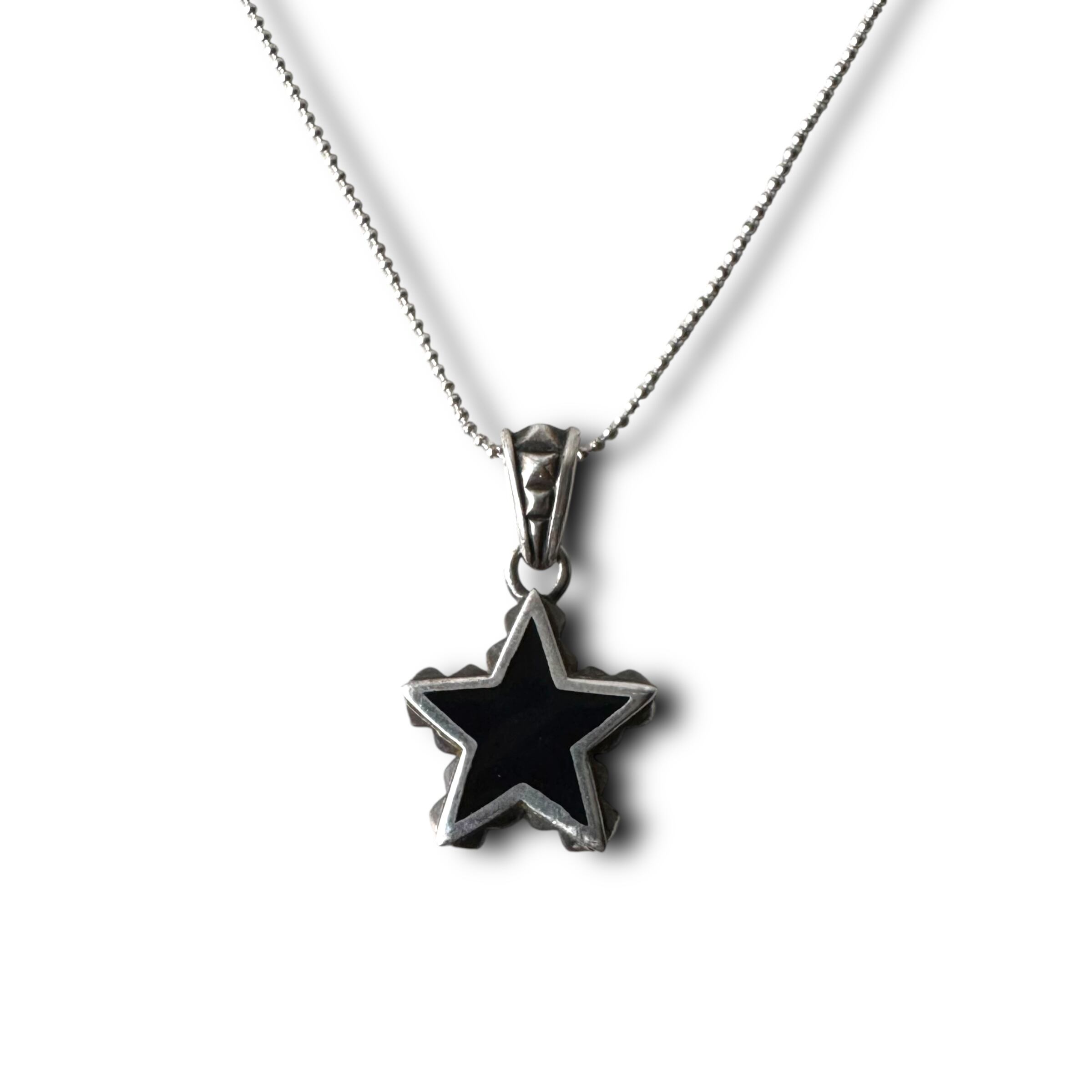 シルバーと黒いエナメル質のコンビネーションがめちゃめちゃ可愛らしく星の周りをいかつめなスタッズが囲う究極デザイン!