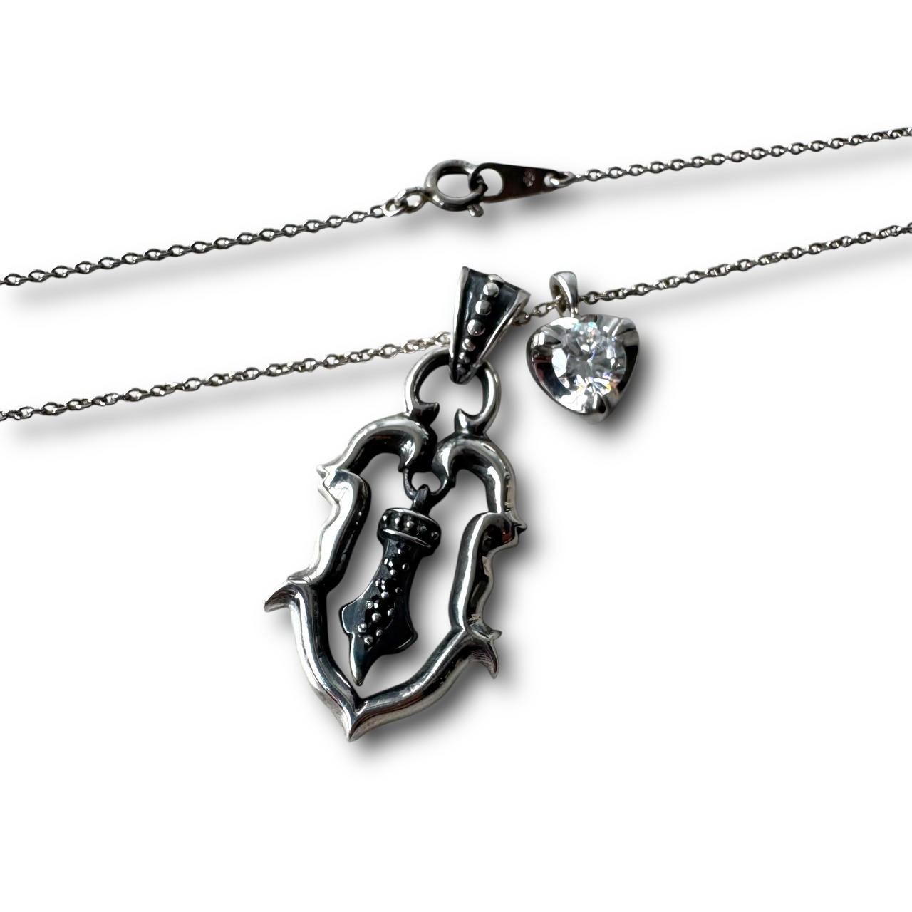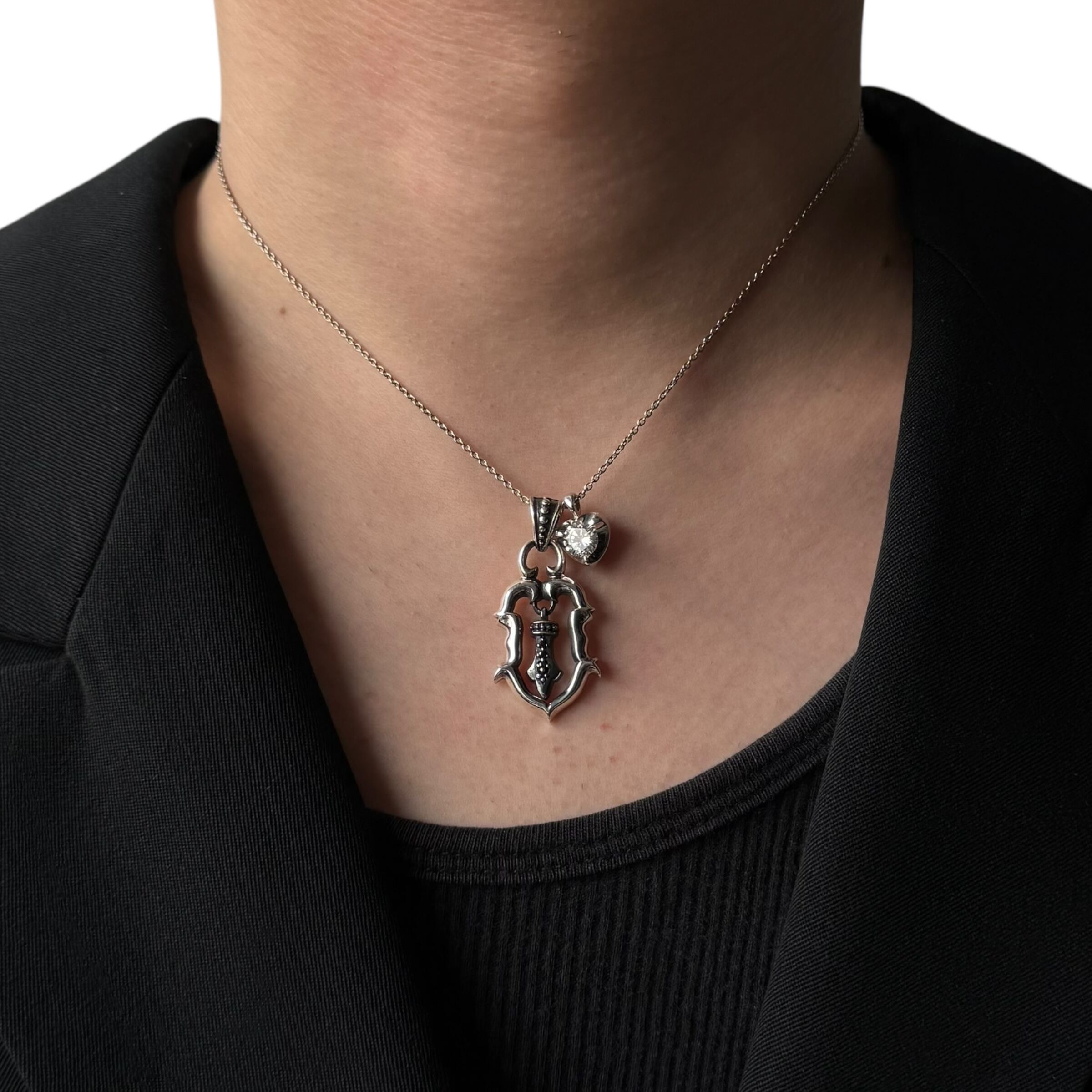 フローラルモチーフのフレームに真ん中にチャームが付いた可愛らしいデザインシルバーネックレス‼️✨