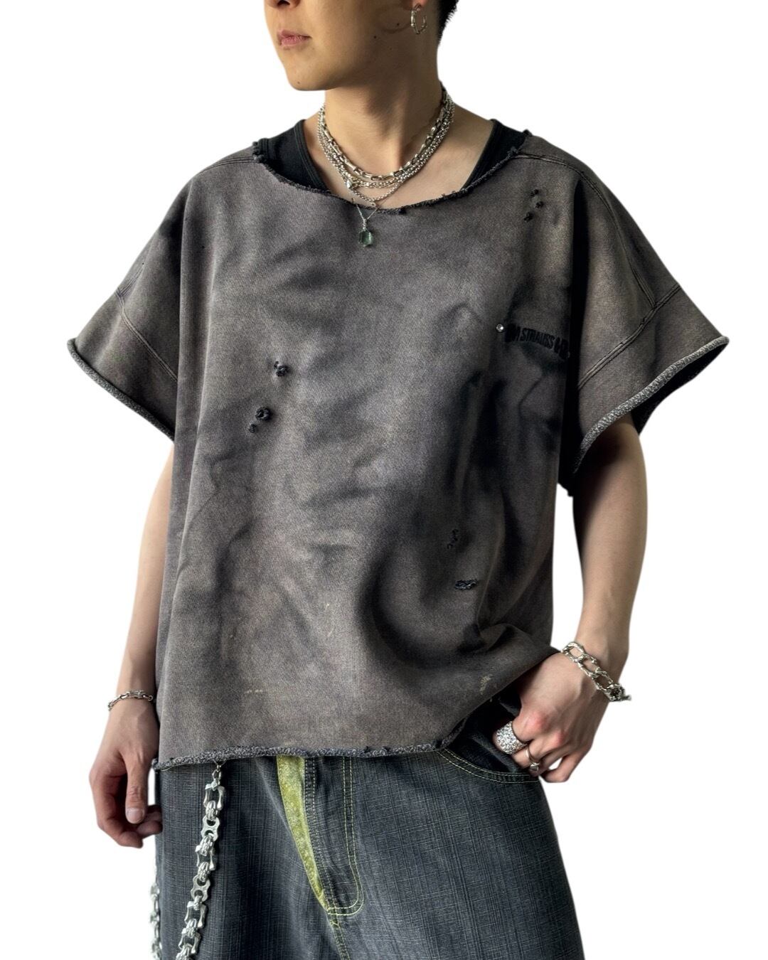 袖と丈は大胆にカットオフされておりワイドシルエットながらに短丈でチョー気分なフォルムがより存在感をプラス✨️