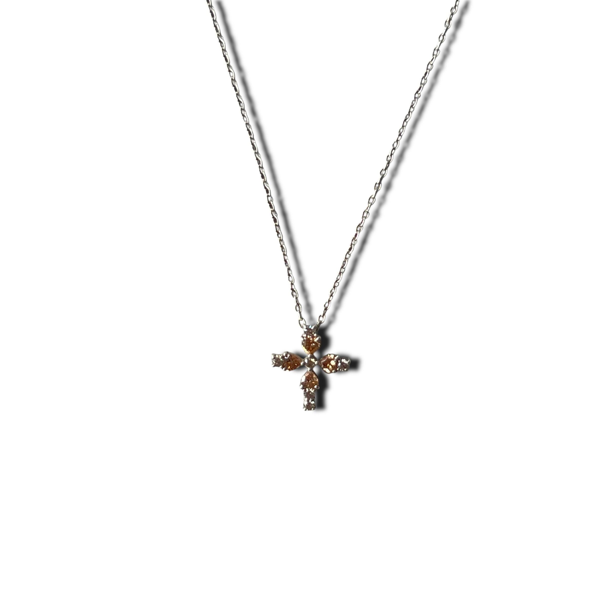 ジルコニアがポイントでデコレーションされた小さなクロスチャームがめちゃくちゃ可愛いデザインネックレス✨️