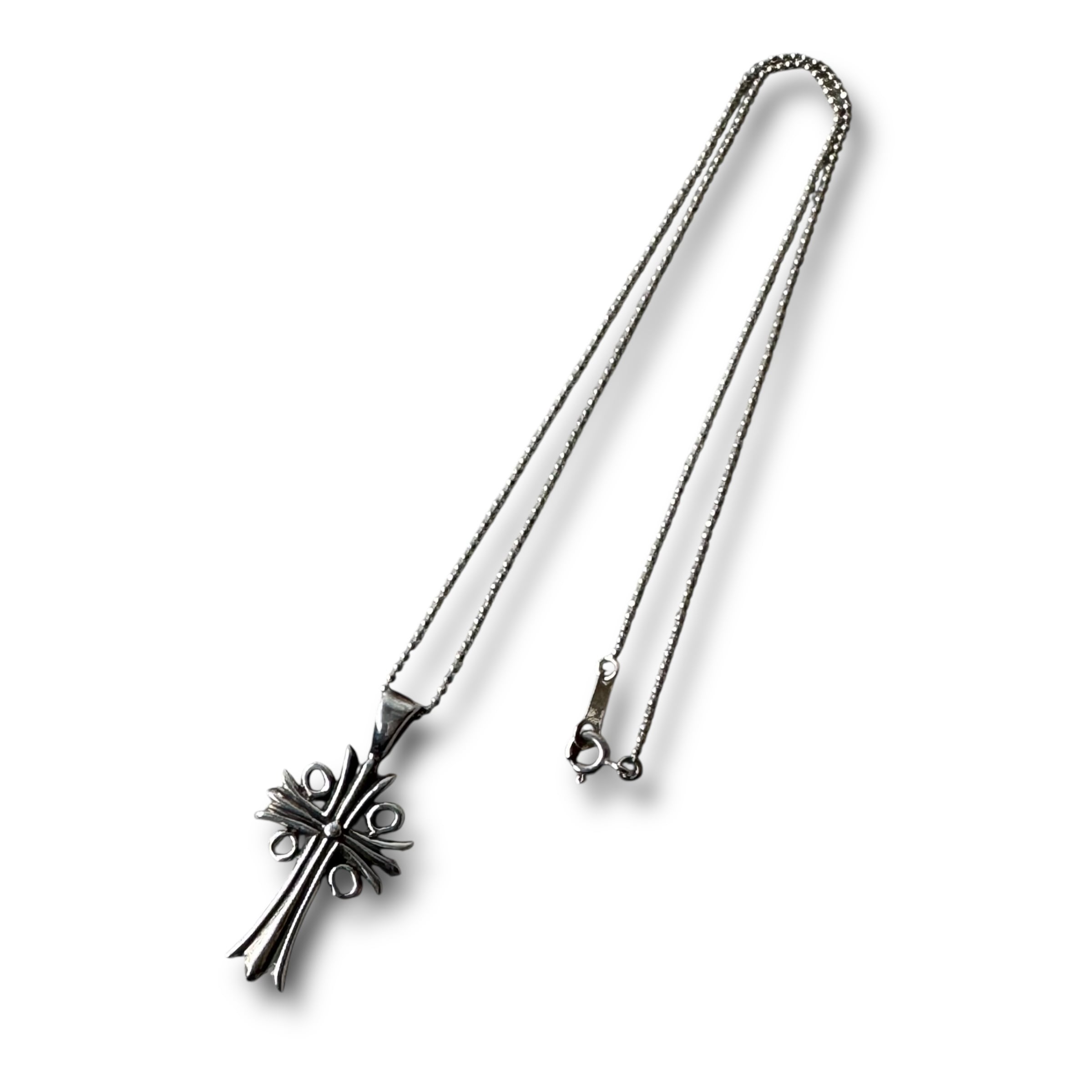 特徴的なクロスのトップがコーディネートのアクセントに抜群なデザインシルバーネックレス✨️✨️
