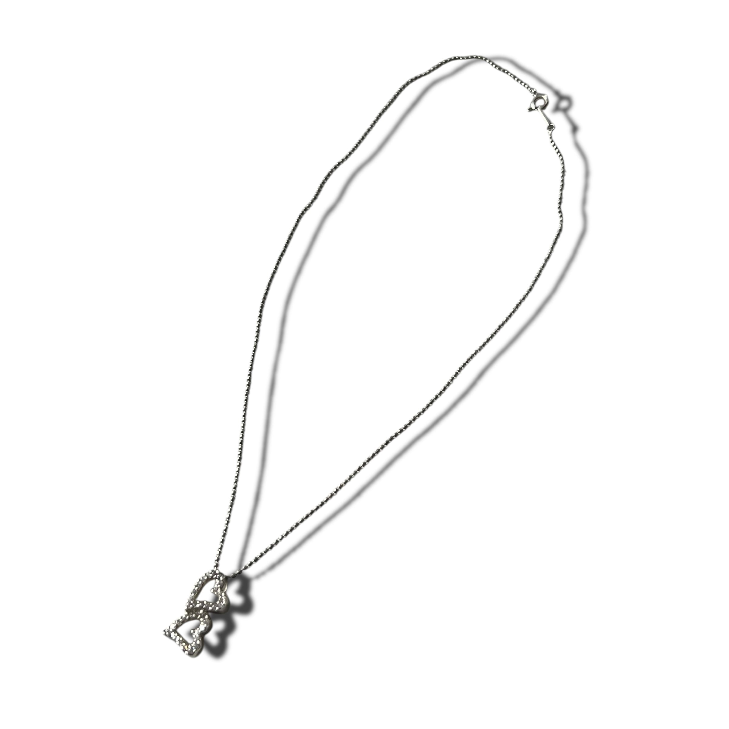 【Sterling silver】 sv925 vintage Double Heart Zirconia necklace