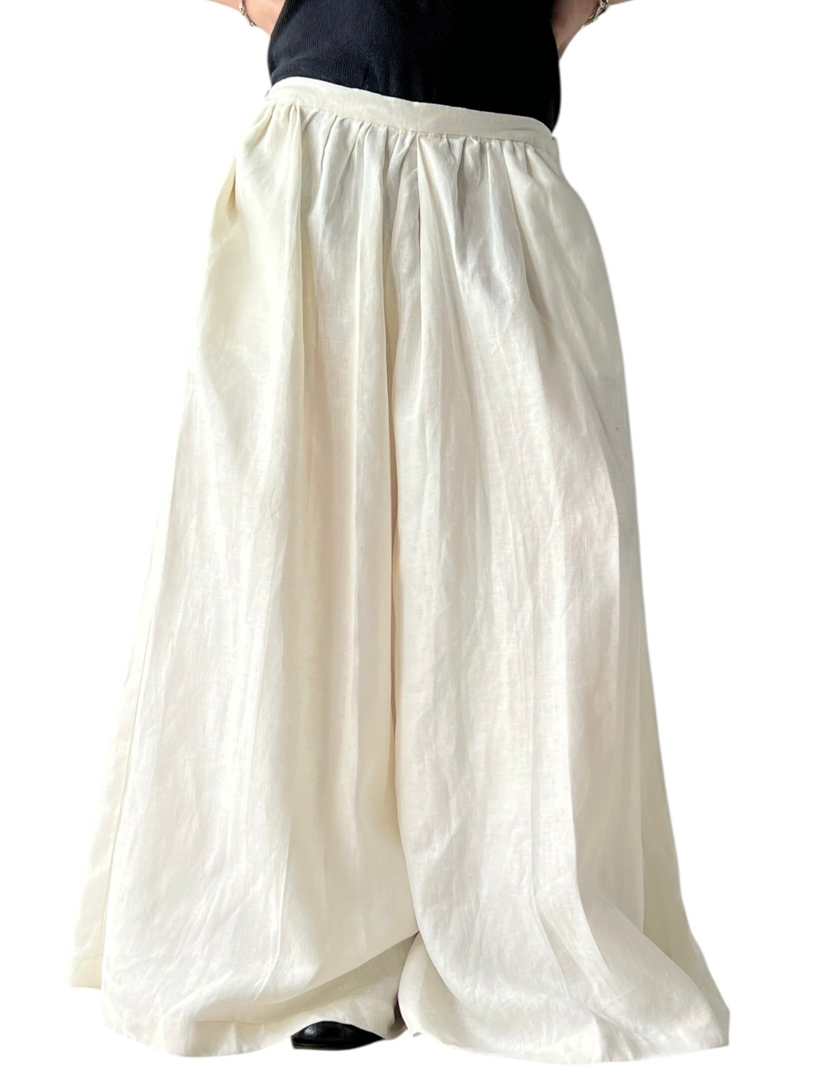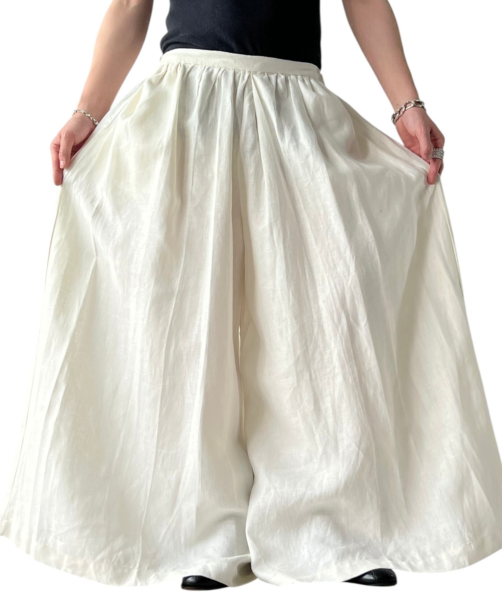 【Old unknown】 Mega hakama silhouette linen tuck easy pants