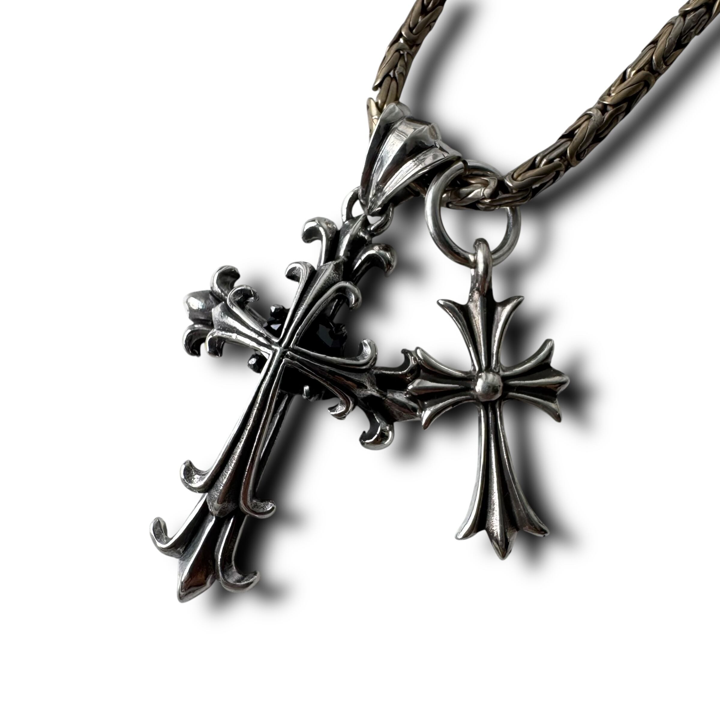 ‼️Special‼️ ♾vintage silver jewelry♾ double cross motif w top design necklace sv925