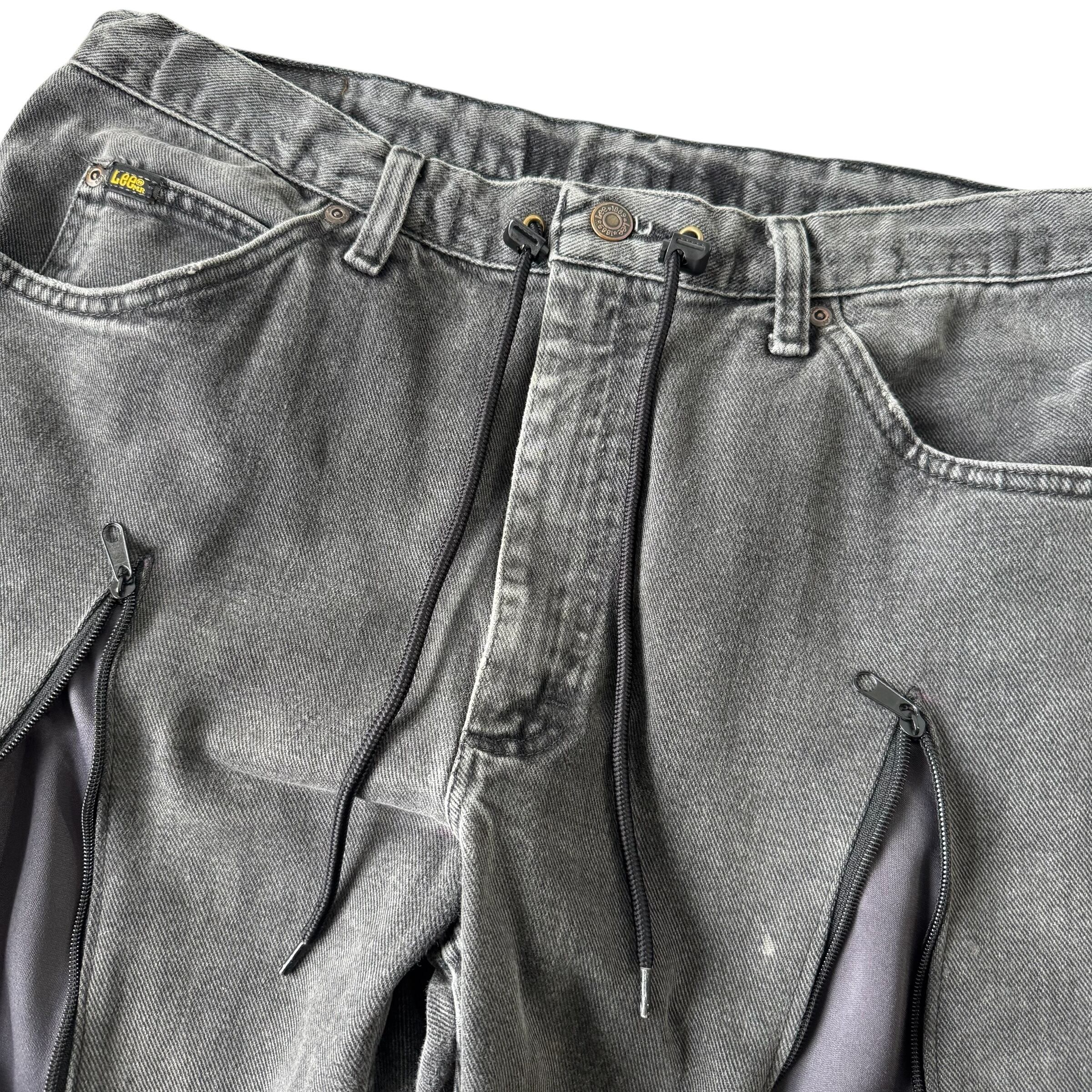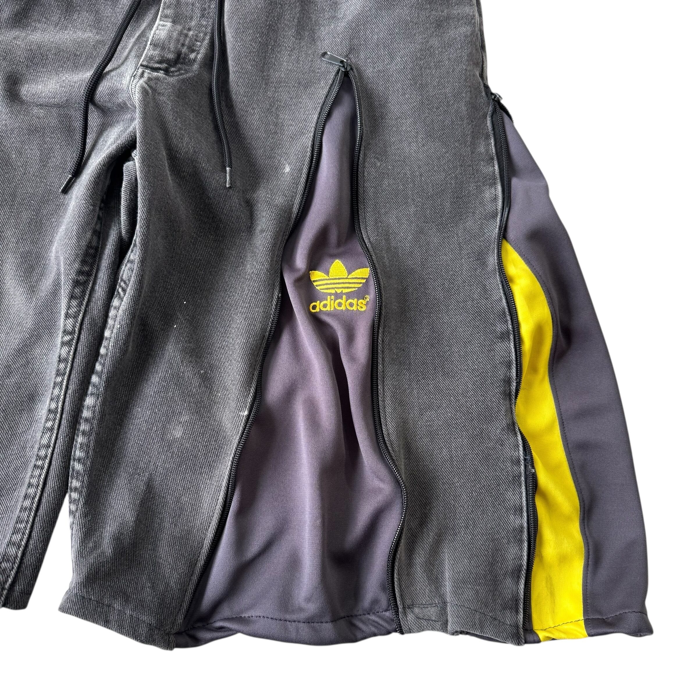 Leeボディーを使用し、フェードしたブラックデニムにadidasのトラックパンツをドッキングさせた極上ワイドフレアシルエットに変貌を遂げたとてつもないカスタムデザインがめちゃくちゃ映える1本‼️
