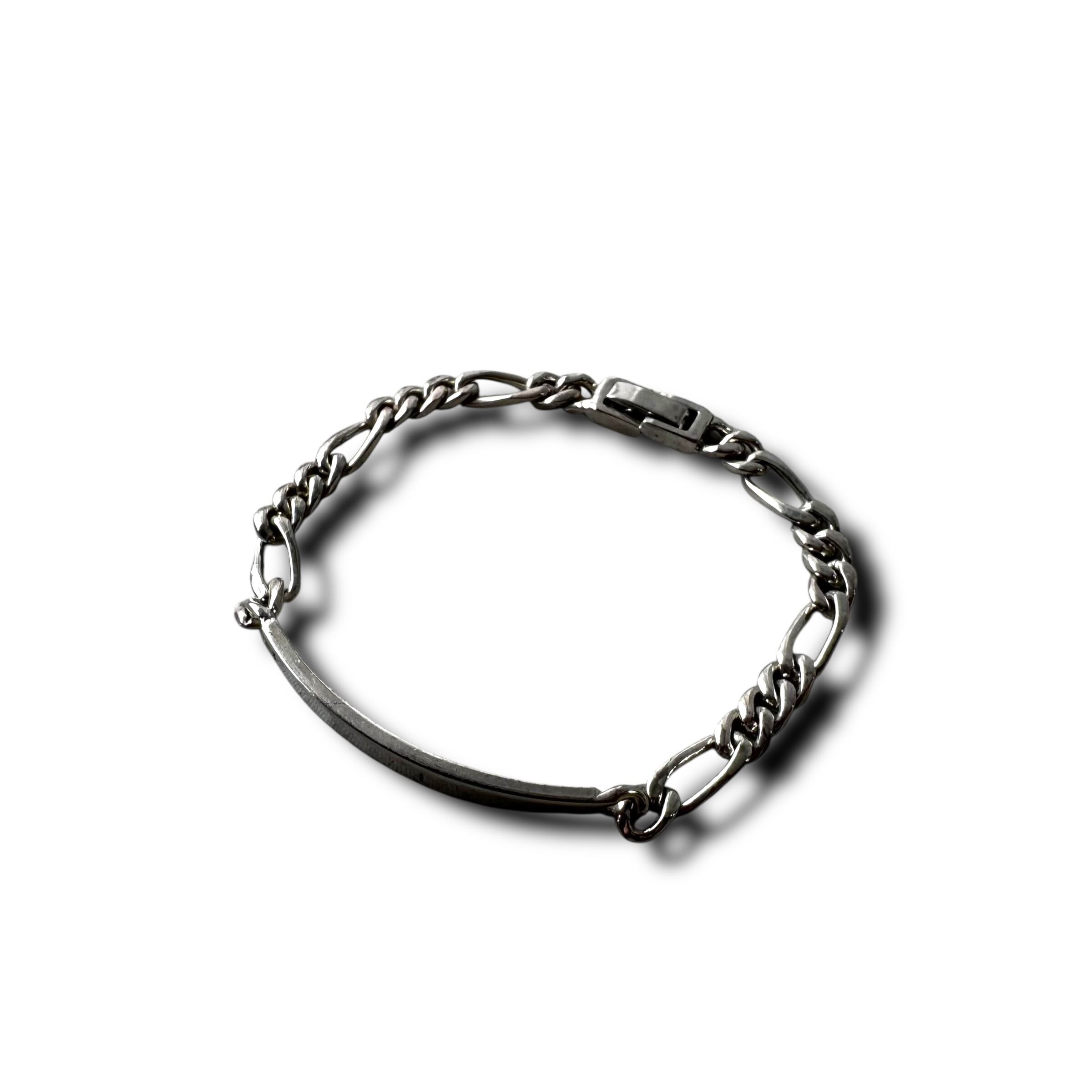 ♾vintage silver jewelry♾ Figaro Chain Plate Design Bracelet sv925