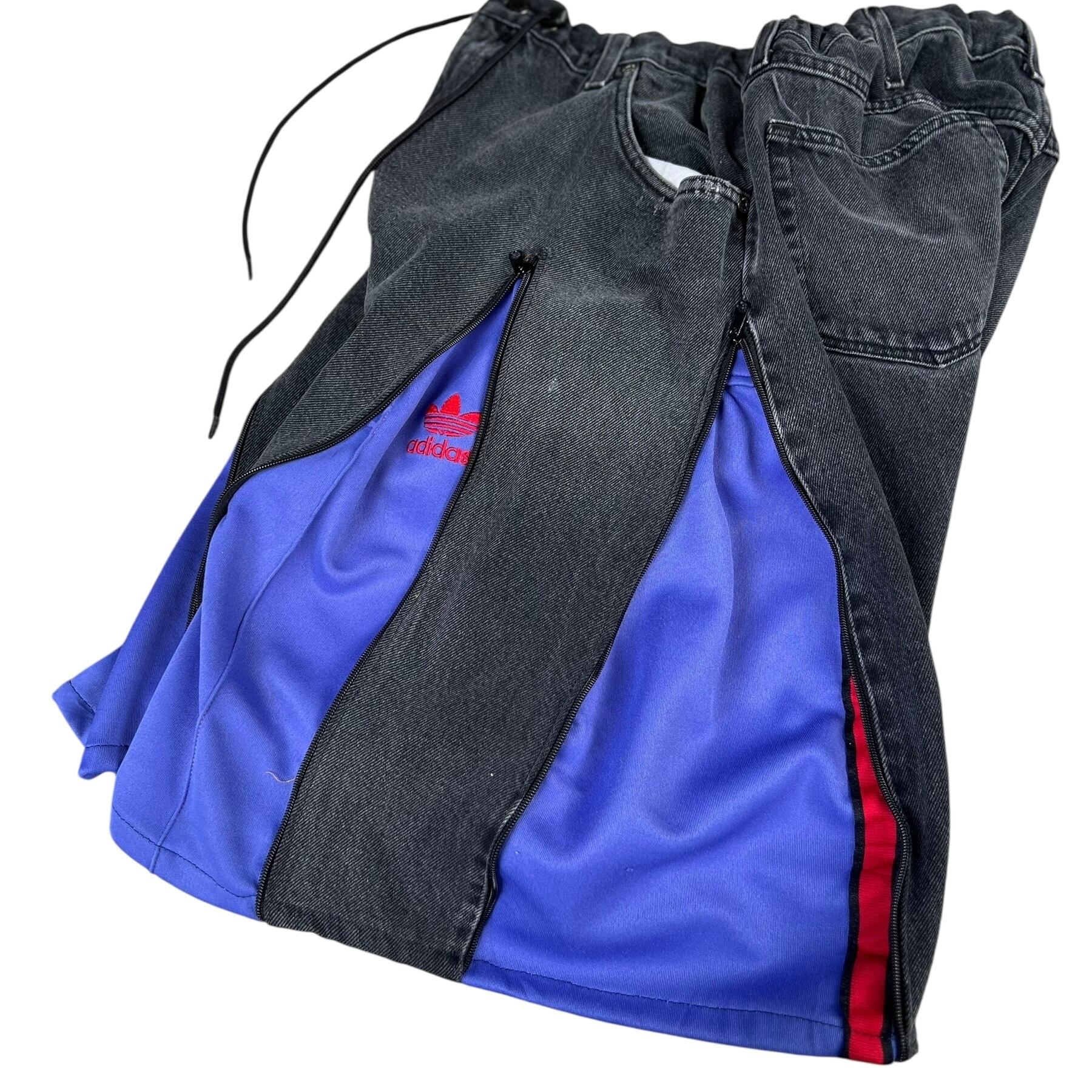 Wranglerボディーを使用し、フェードしたブラックデニムにadidasのトラックパンツをドッキングさせた極上ワイドシルエットに変貌を遂げたとてつもないカスタムデザインがめちゃくちゃ映える1本‼️