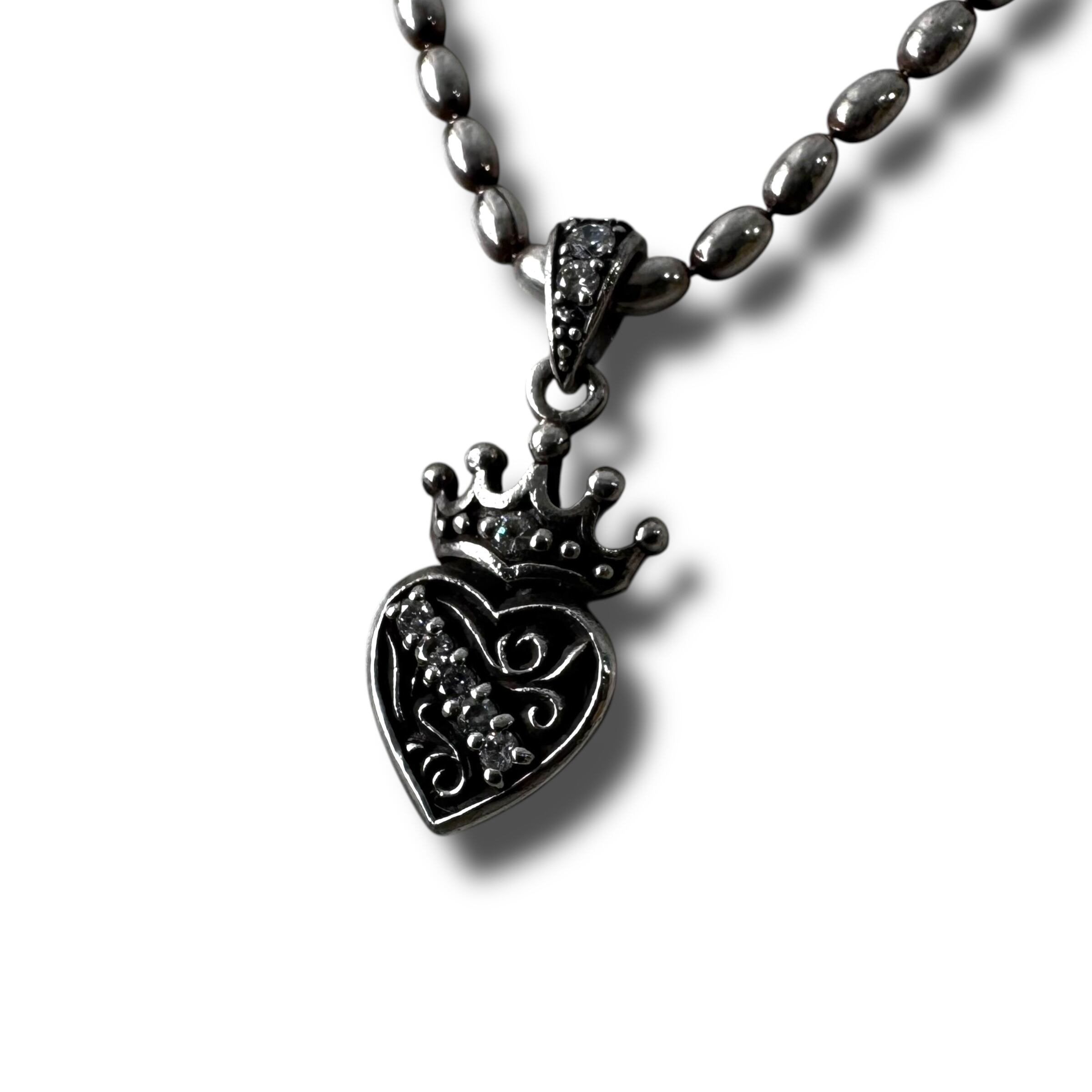 王冠を被ったハートのモチーフがきゃわいらしいヴィンテージシルバーネックレス✨️