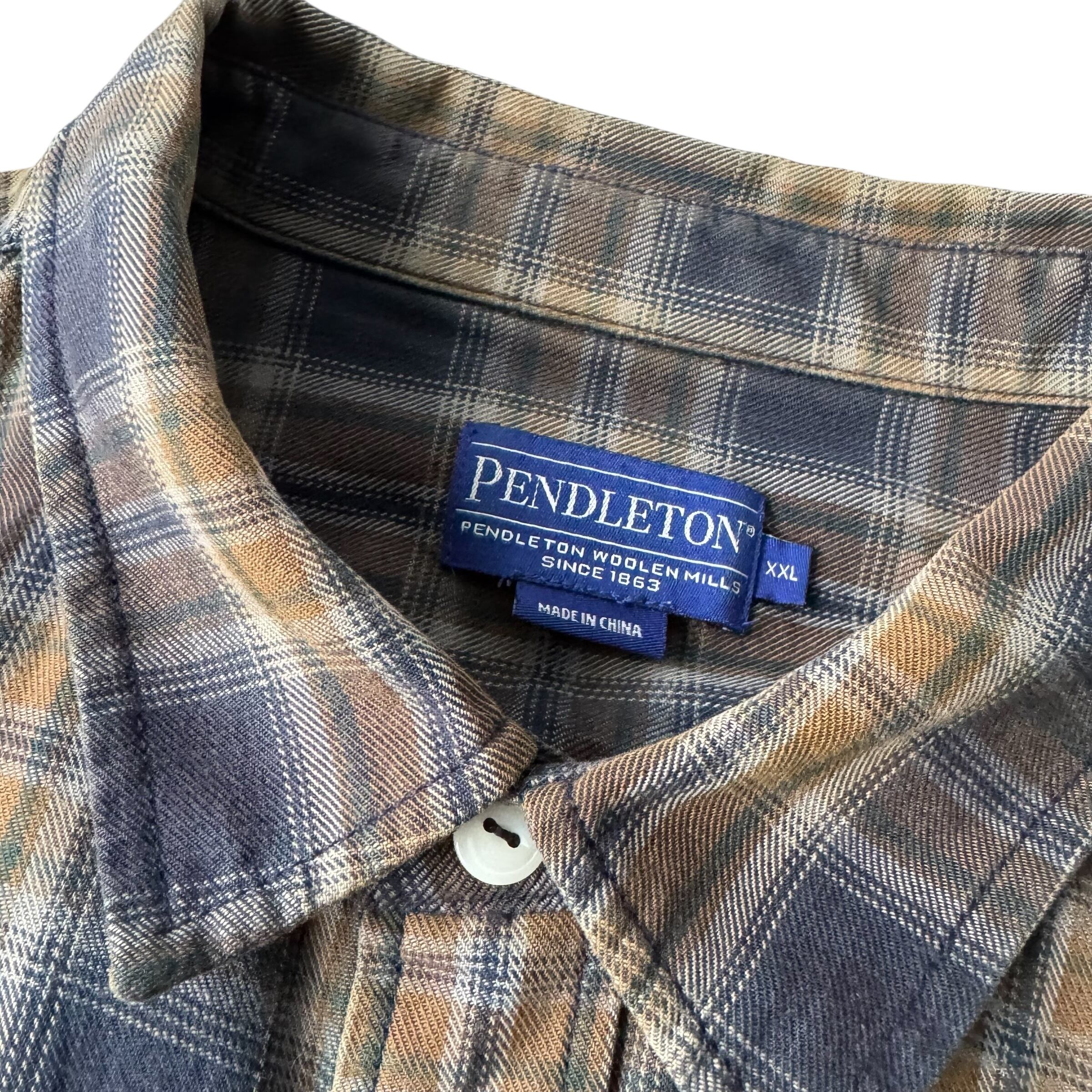 ♾PENDLETON♾ patchwork custo design over sized check L/S shirt sizeXXL