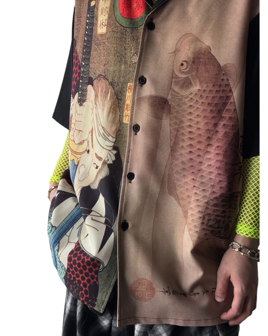 ♾ STICCT SAVY ♾ Ukiyo-e design open-collar shirt size X LARGE