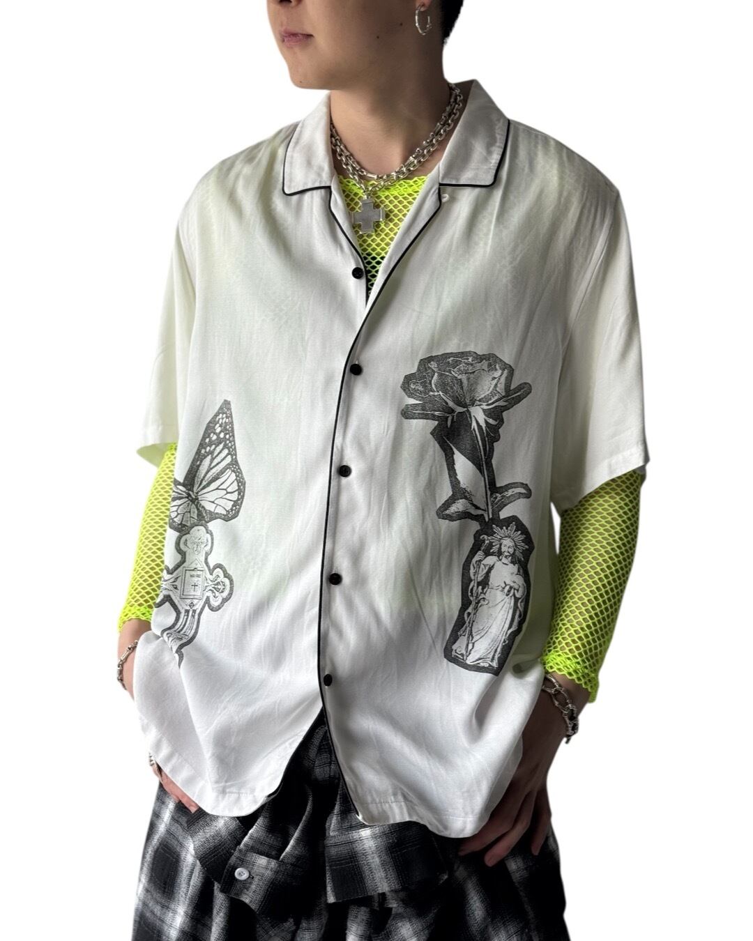 ♾ KSUBI ♾ Photo patch print design open collar shirt size XL
