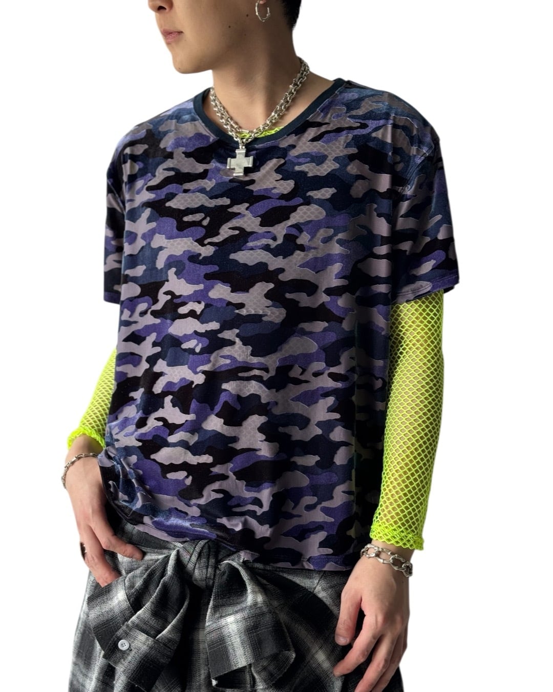 迷彩の男らしい雰囲気とベロアで透け感のある素材がレディース感のあるめちゃくちゃジェンダーレスなTシャツ‼️‼️‼️