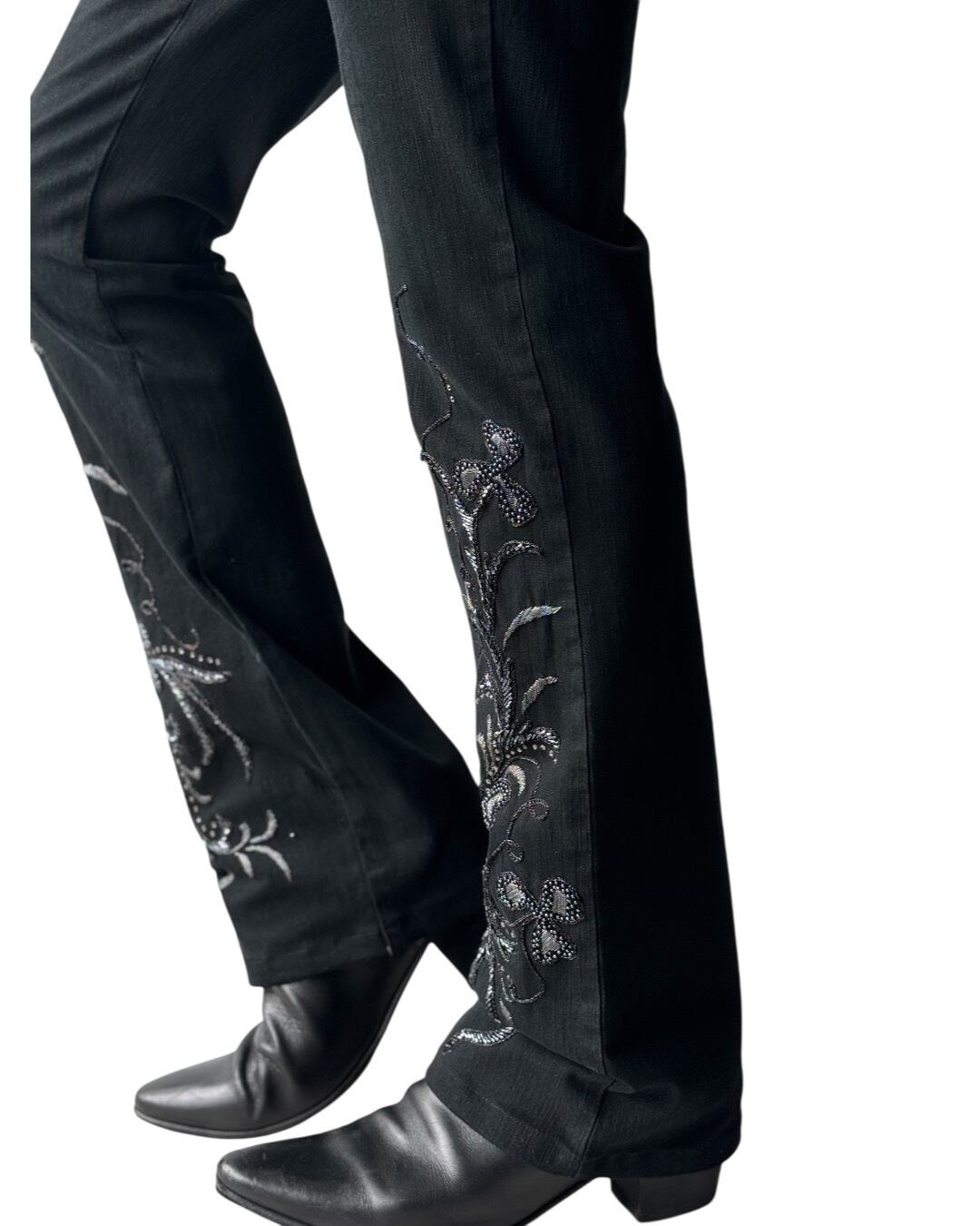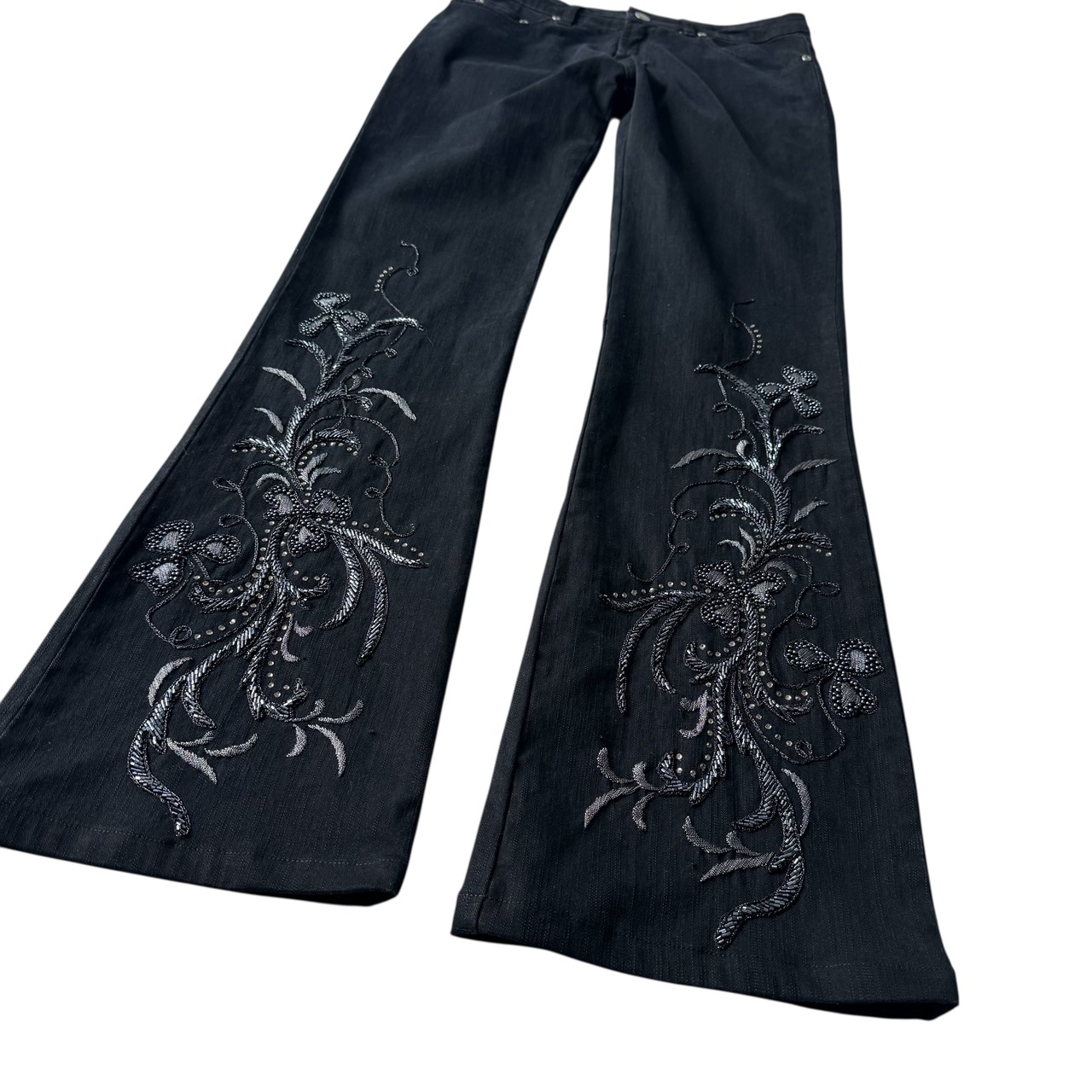 ♾cache♾ Beaded embroidery design black flare denim size 2