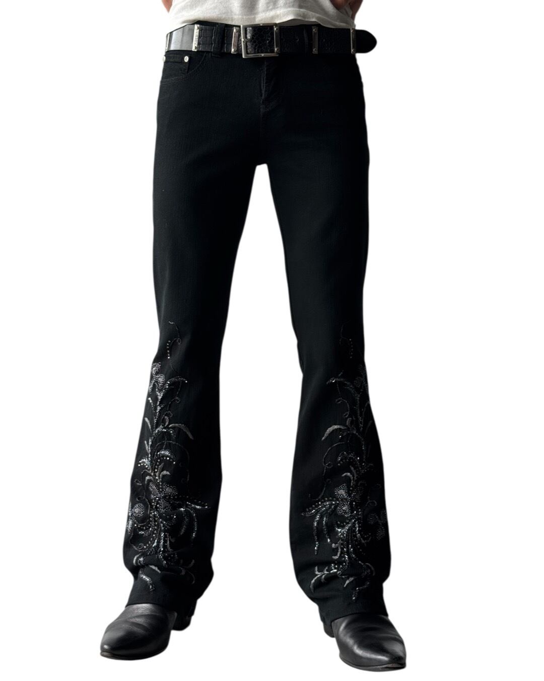 シンプルなブラックデニムのフレアパンツにビーズが刺繍されたとってもキュートな1着‼️‼️