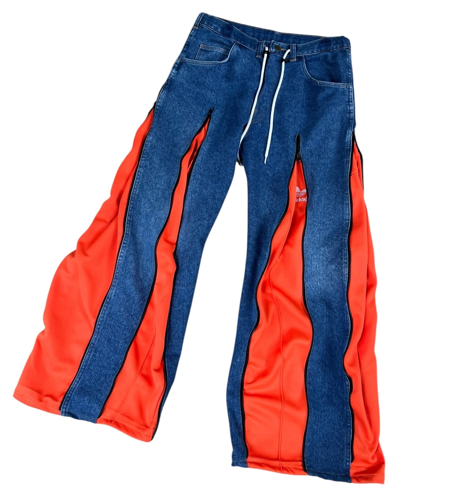 adidasのトラックパンツをドッキングさせた極上ワイドフレアシルエットに変貌を遂げたとてつもないカスタムデザインがめちゃくちゃ映える1本‼️