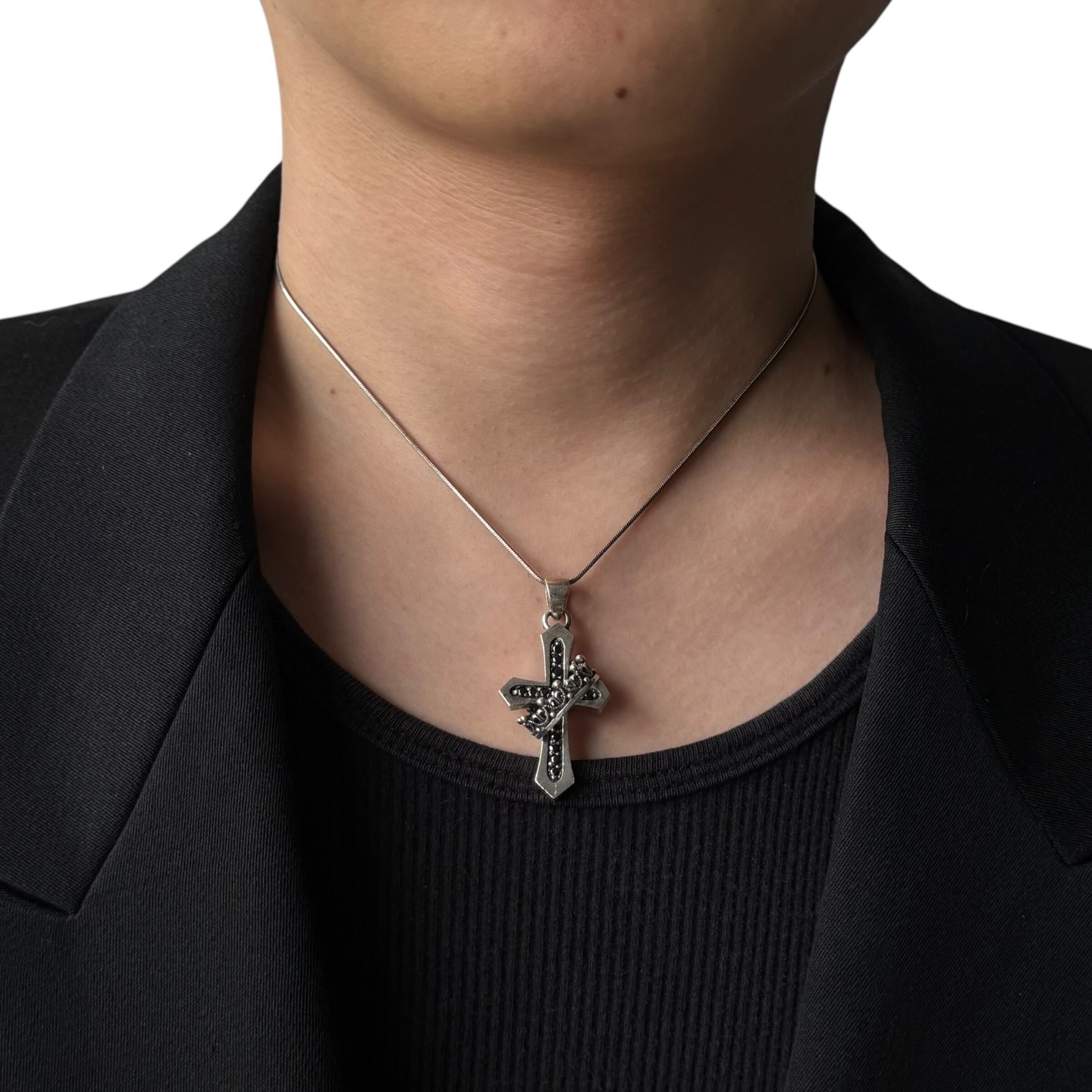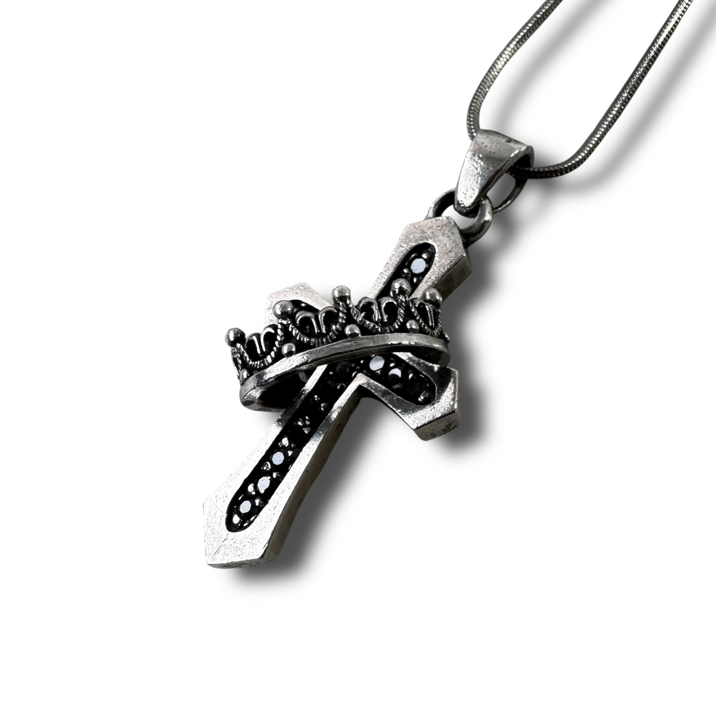 クロスとクラウンのコンビネーションが抜群に映えるダブルトップデザインが豪華なペンダントトップネックレス✨️