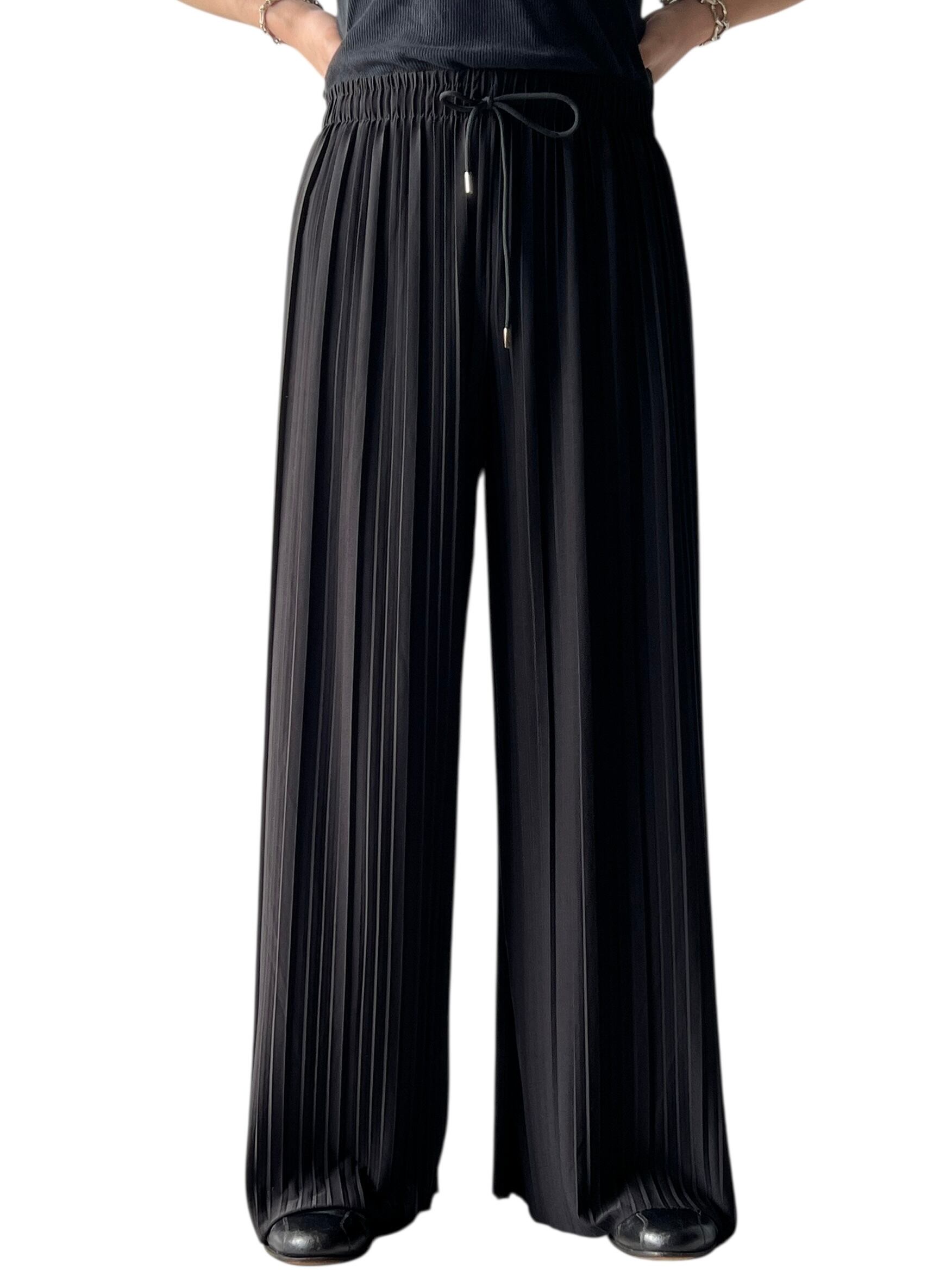 綺麗に広がるワイドフレアシルエットのブラックプリーツパンツ⭕️