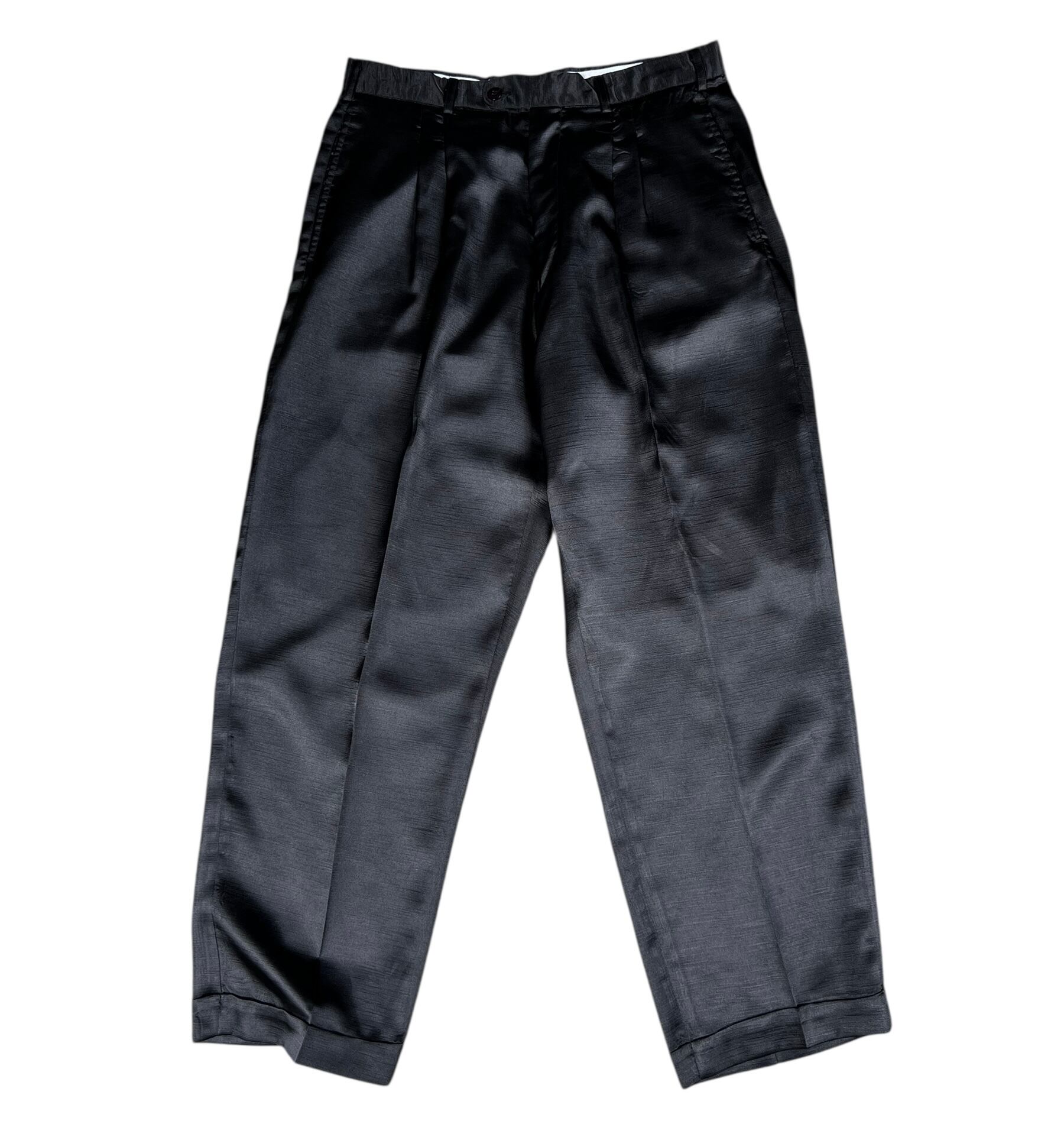 【Trust】Shiny woven wide tuck slacks