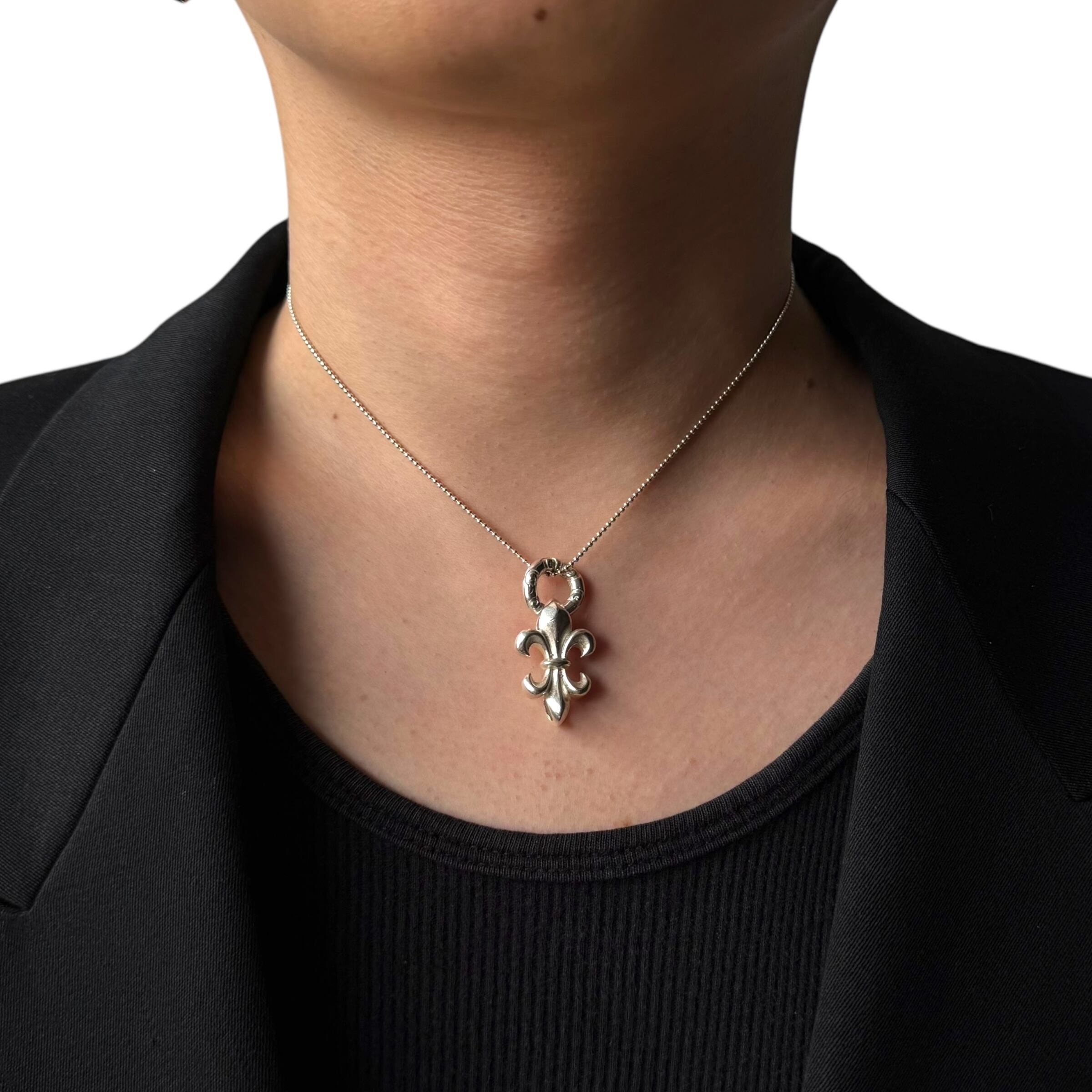 造形が立体的に彫り込まれた百合の紋章モチーフのデザインペンダントトップネックレス✨️