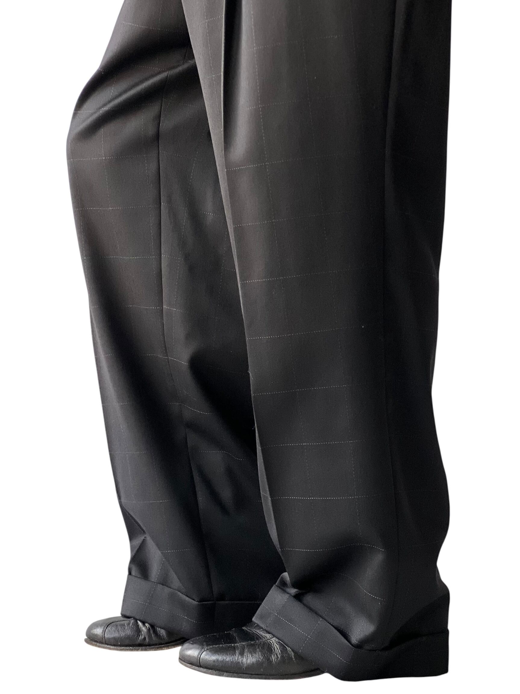 【Old vintage】"100% WOOL" Windowpane Check pattern wide tuck slacks