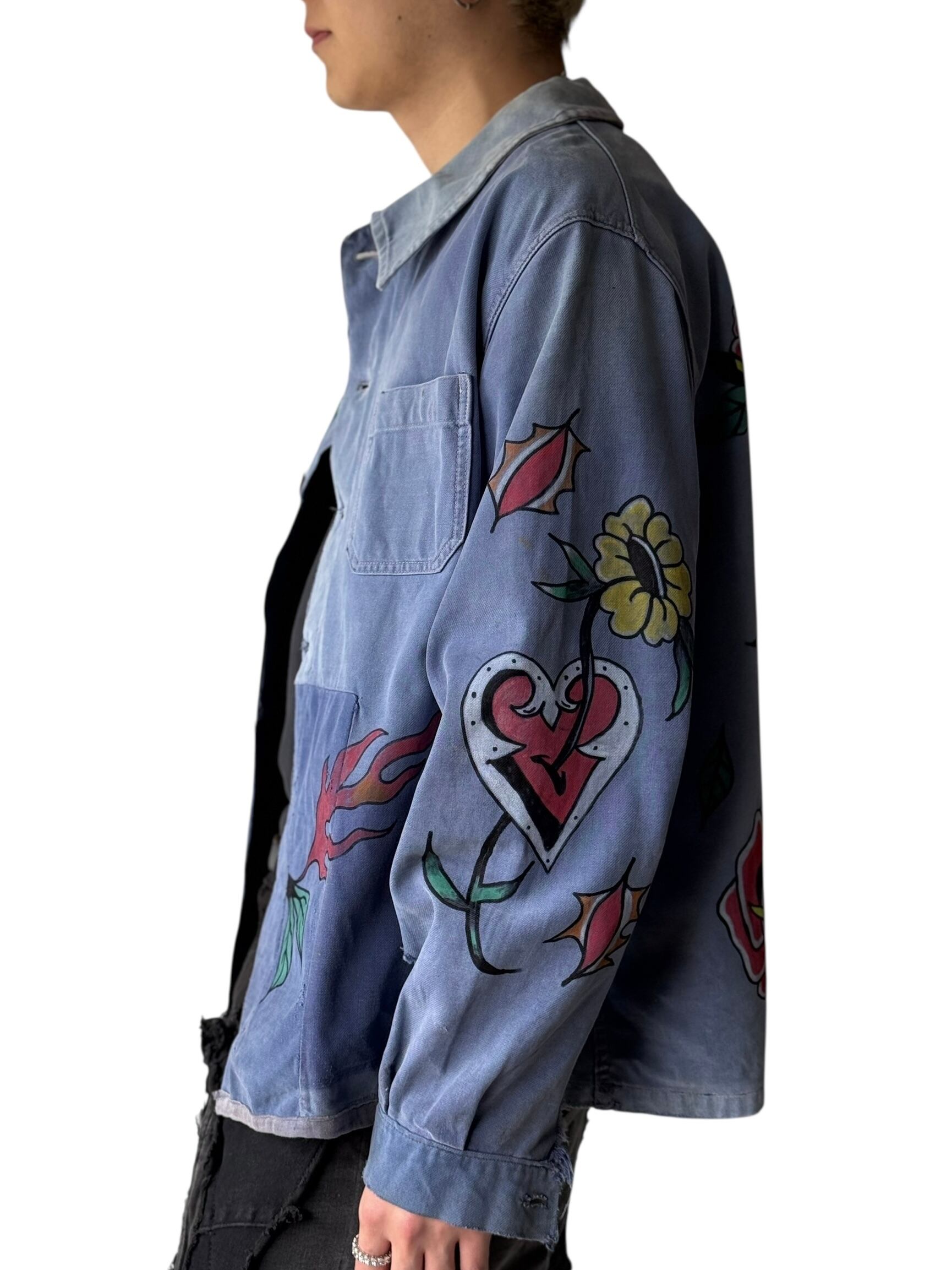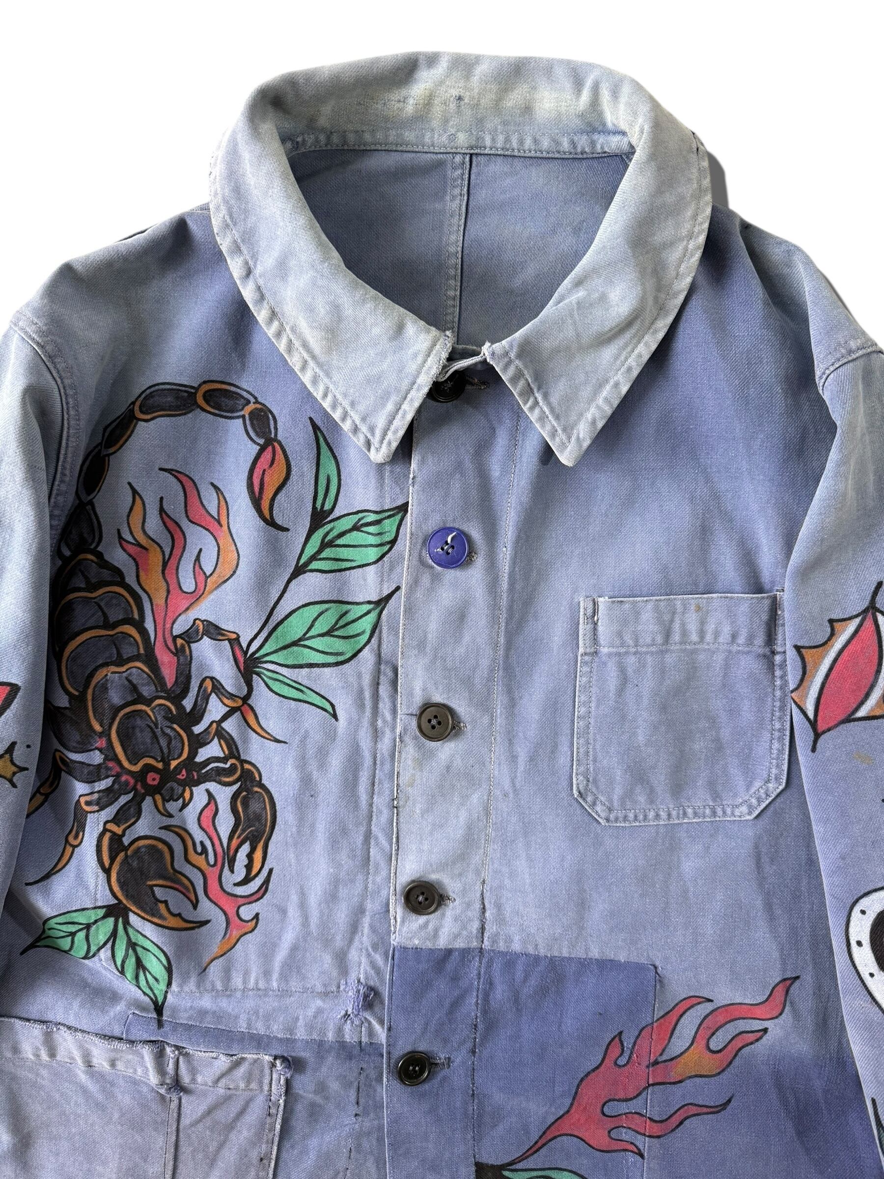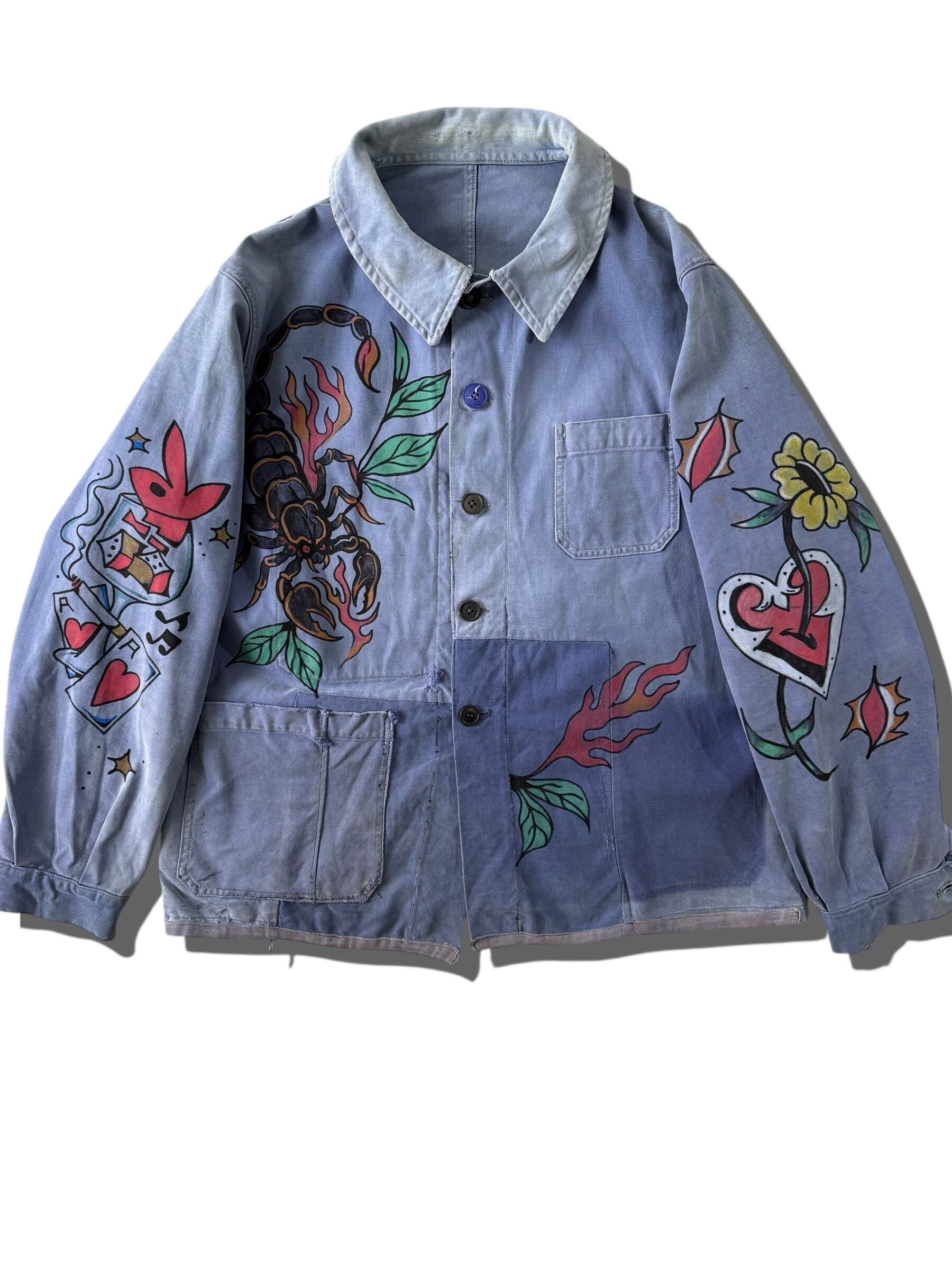 【EURO vintage】 "Tattoo Paint Custom" Repaired aged faded work jacket