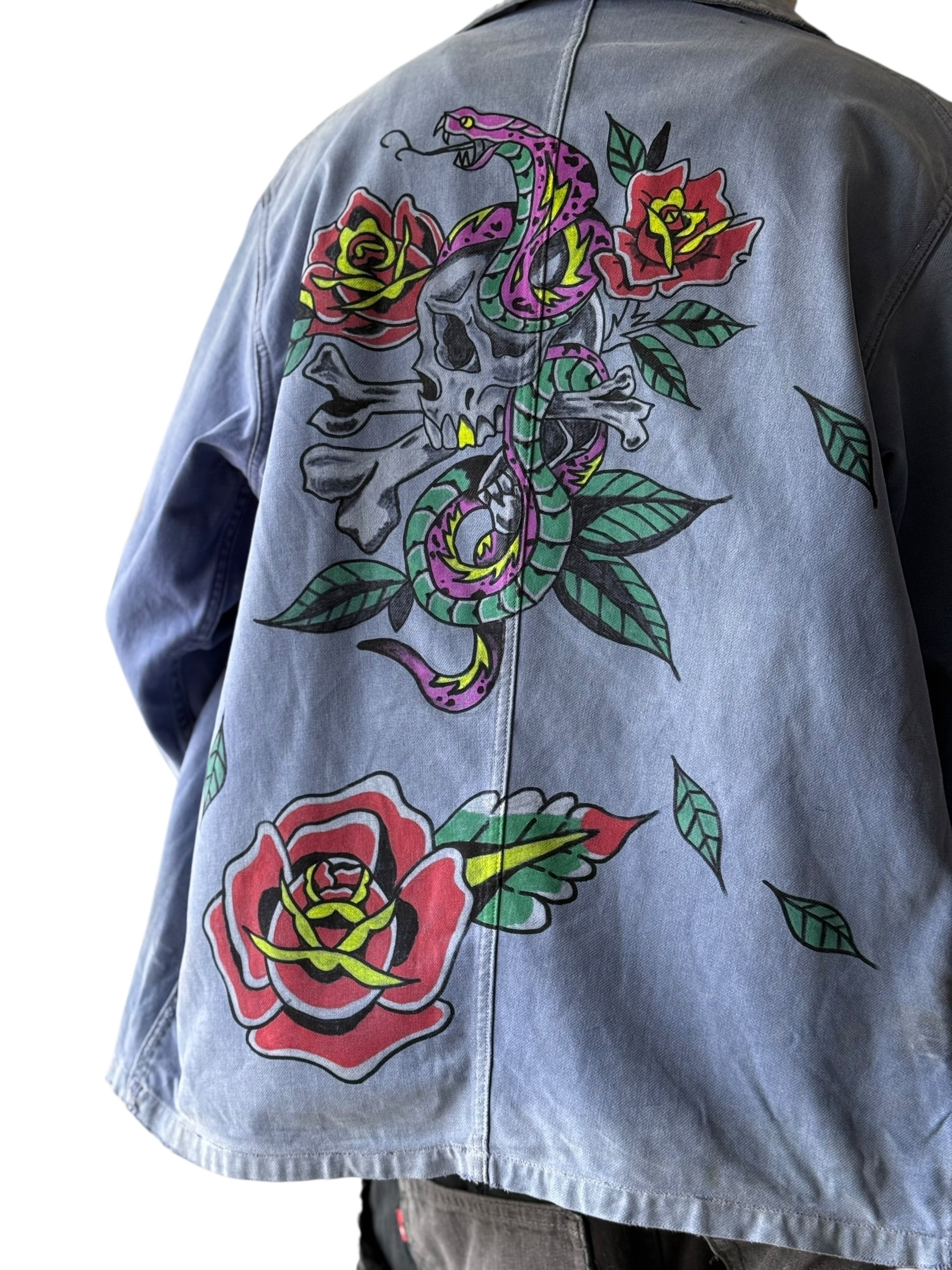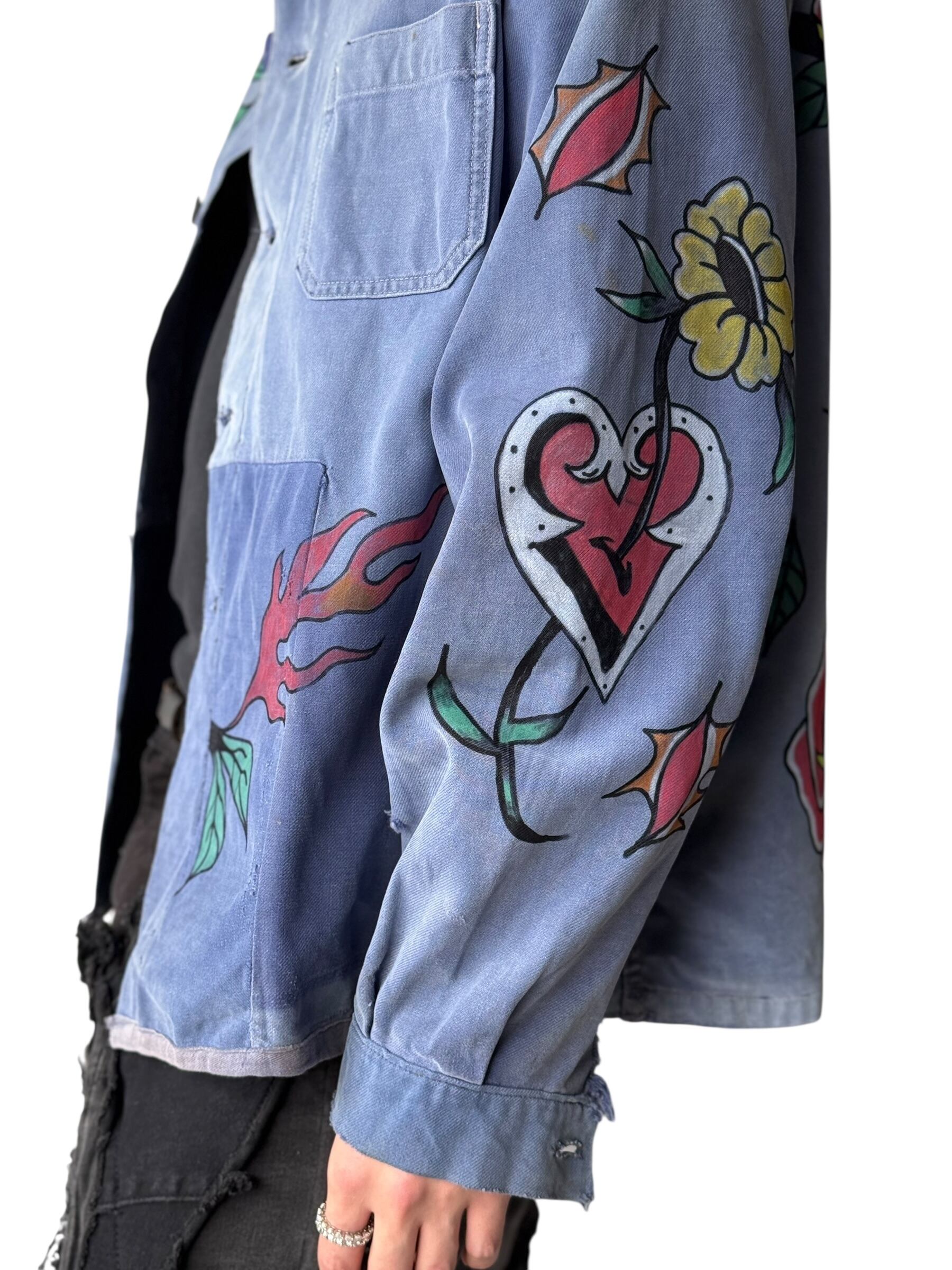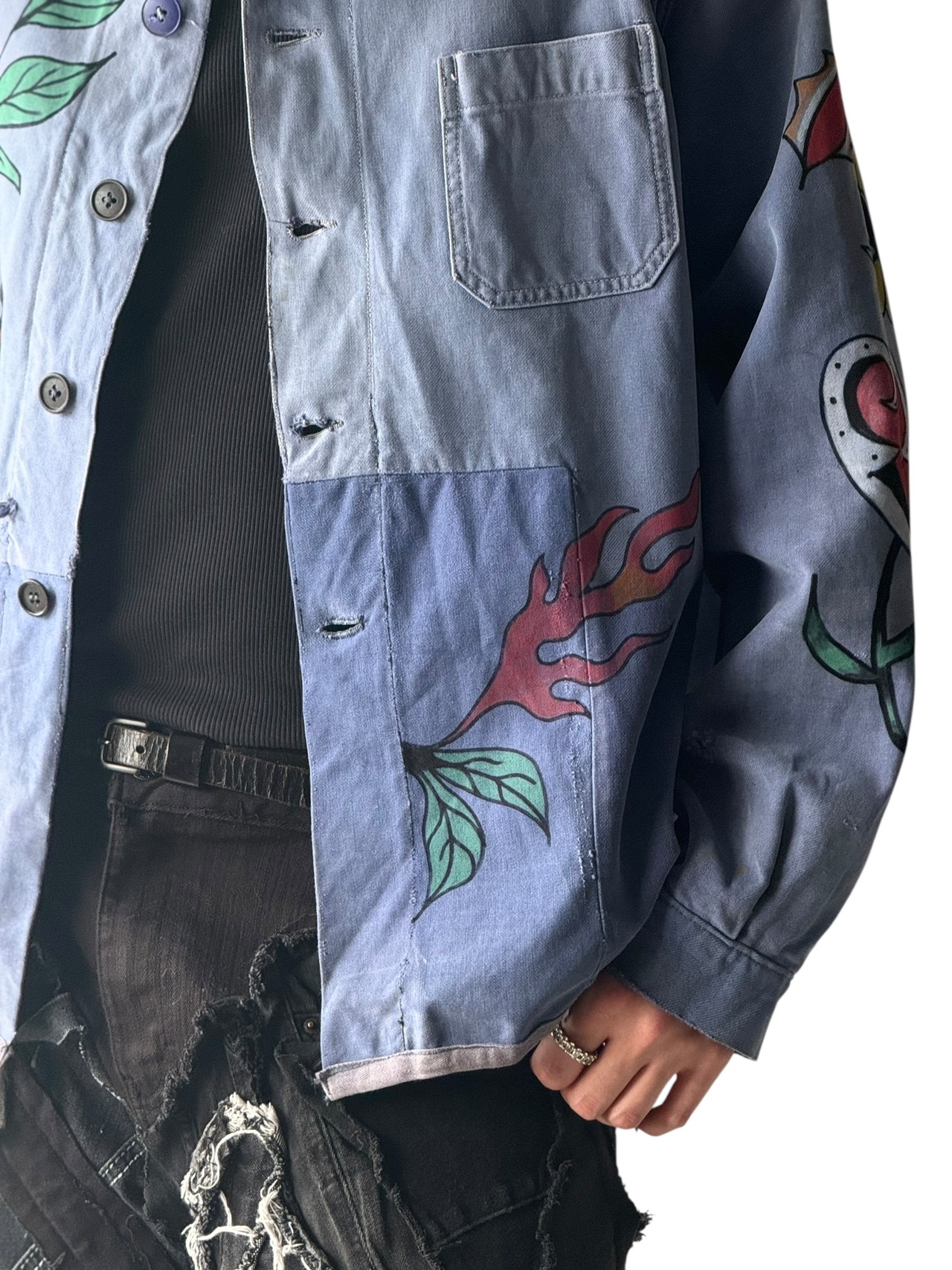 【EURO vintage】 "Tattoo Paint Custom" Repaired aged faded work jacket