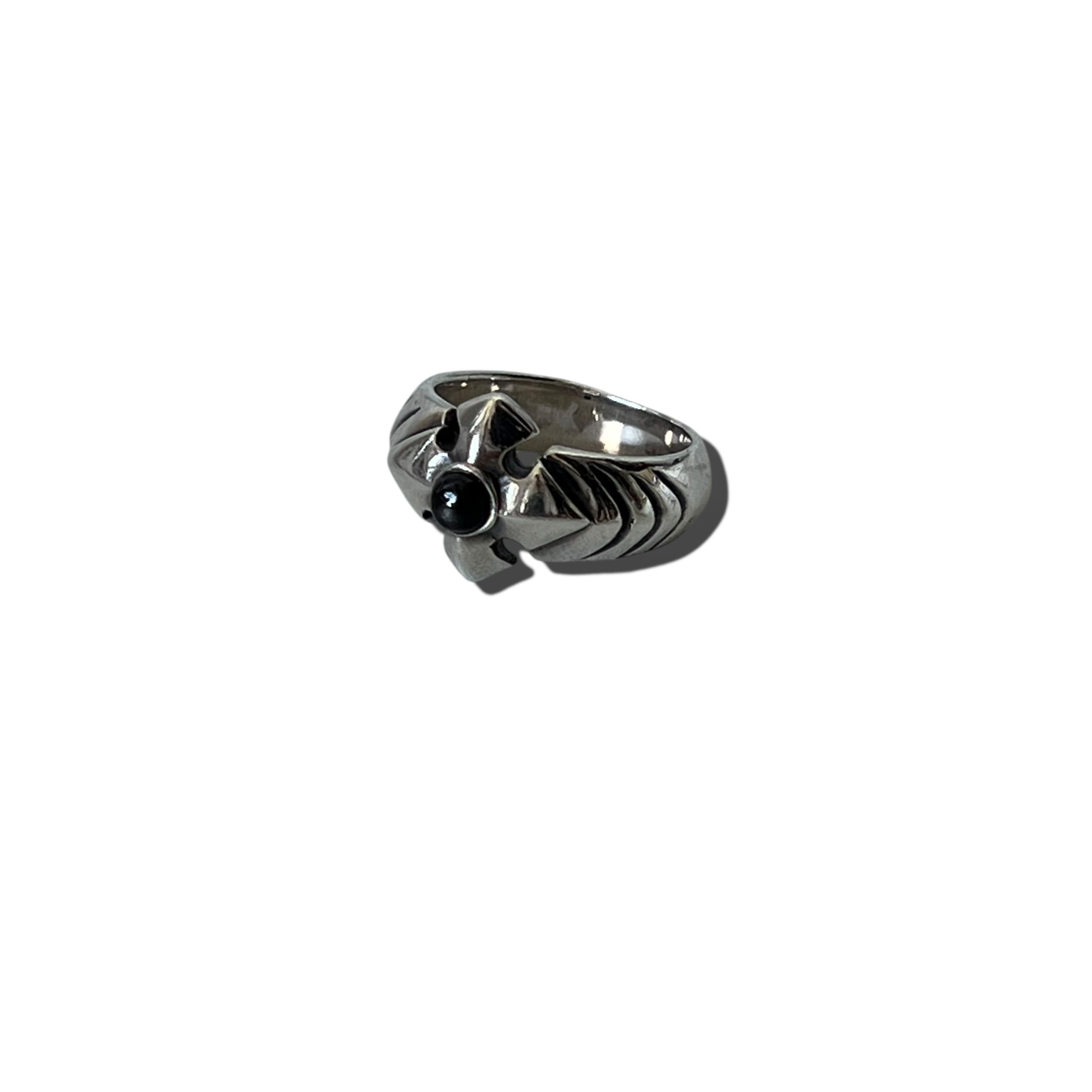 クロスの中央にブラックストーンが輝くかっこいいデザインシルバーリング‼️‼️