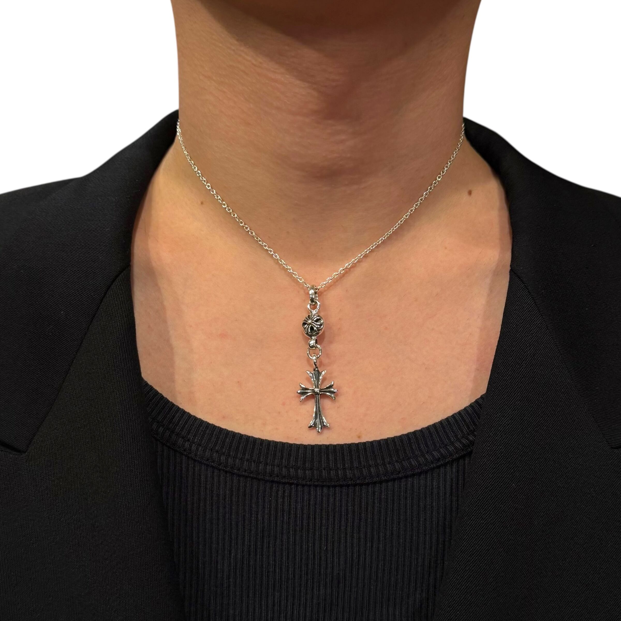 ♾Vintage Silver Jewelry♾ Cross motif design charm necklace sv925