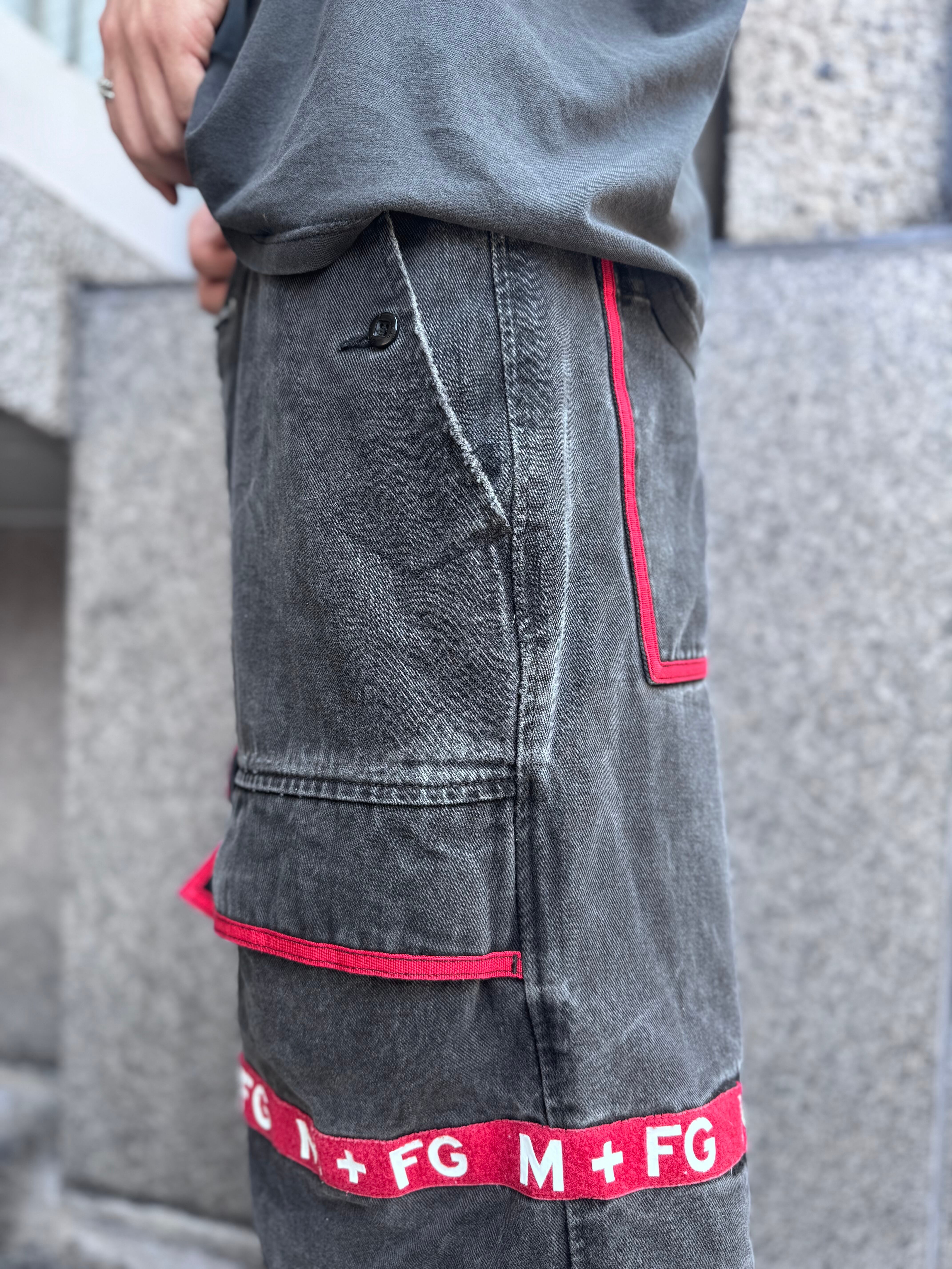 【LE JEAN DE MARITHE FRANCOIS GIRBAUD】Shuttle Tape wide half denim pants / Black × Red