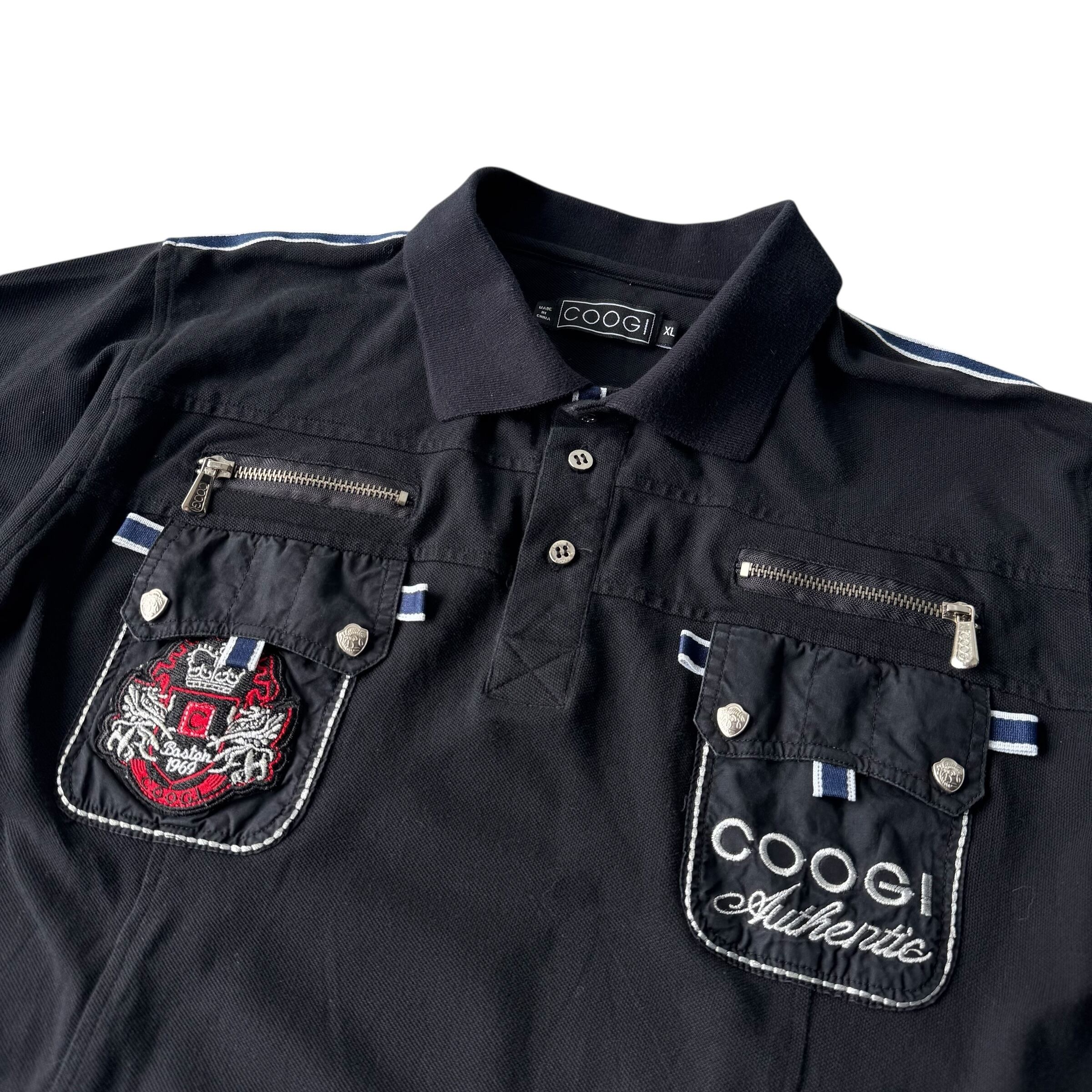 ♾COOGI♾ multi pocket emblem logo design polo shirt sizeXL