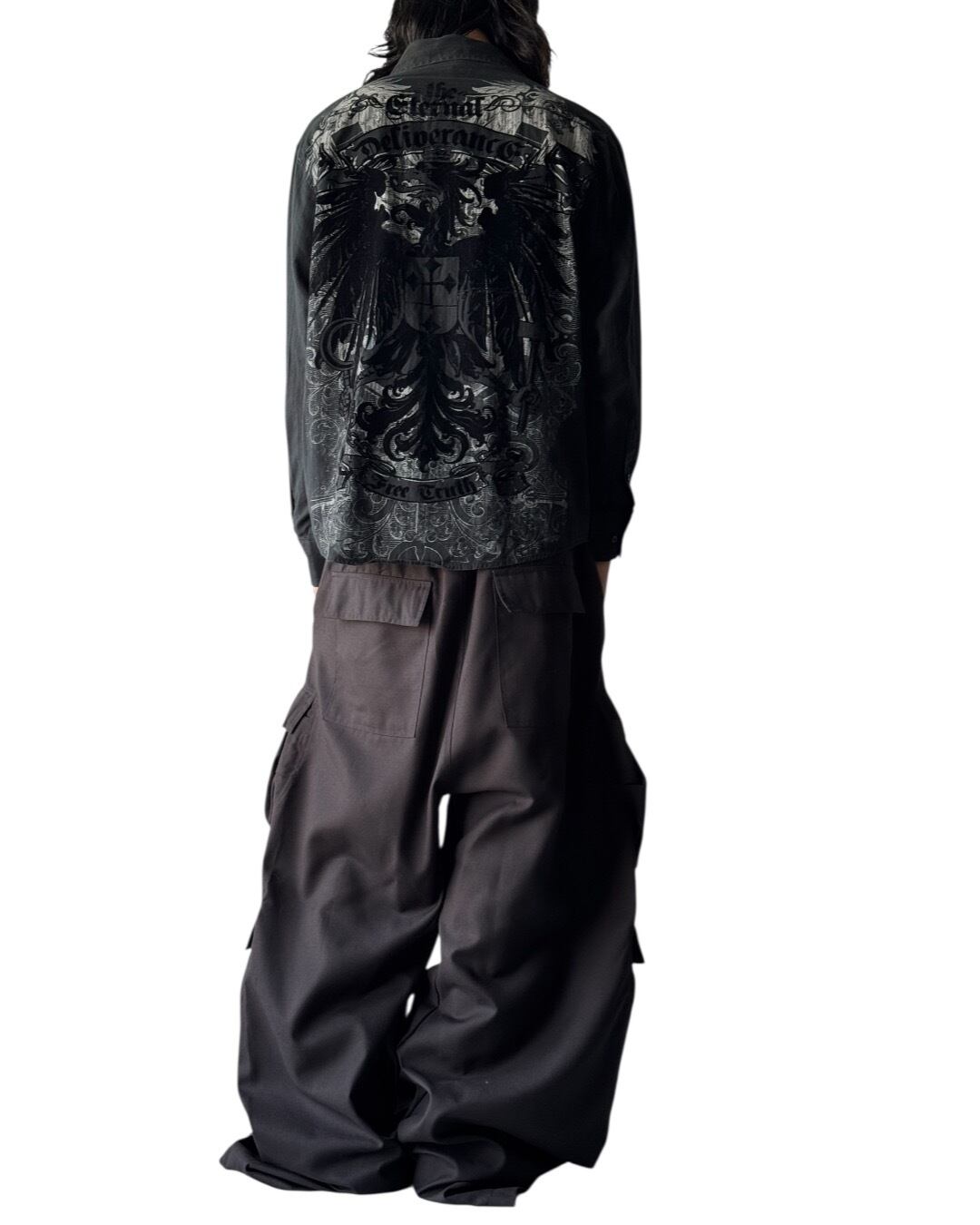 胸元と背面にエンブレムとイーグルのビッグモチーフ、トライバル柄とフローラル柄がベロアでデザインされたヤンチャ00sな雰囲気ダダ漏れ♡