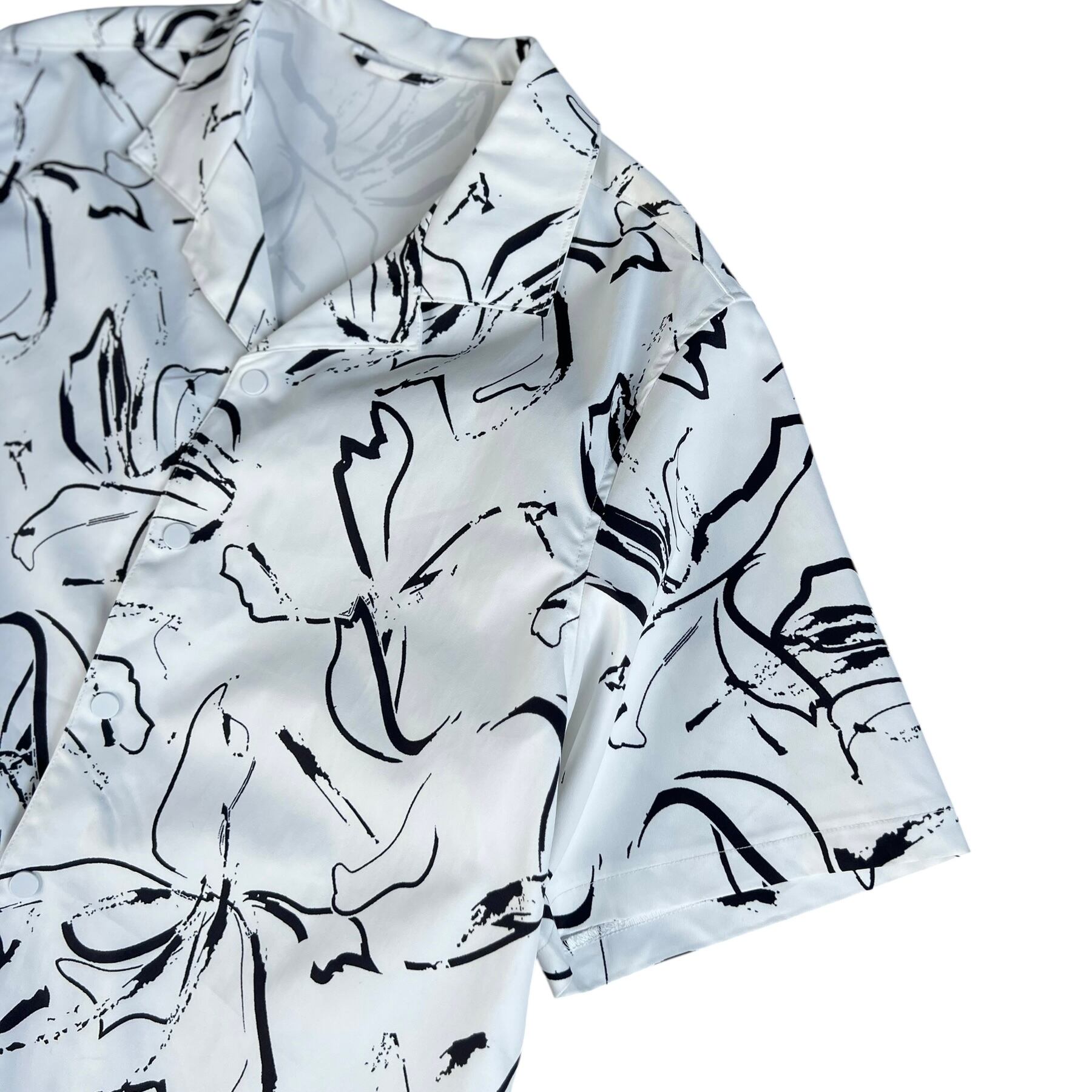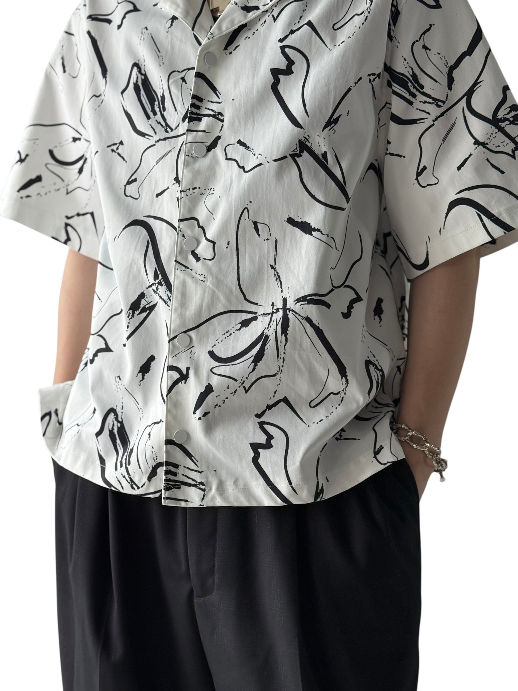 【design used】 Art Flower pattern s/s Open collar Snap button shirt