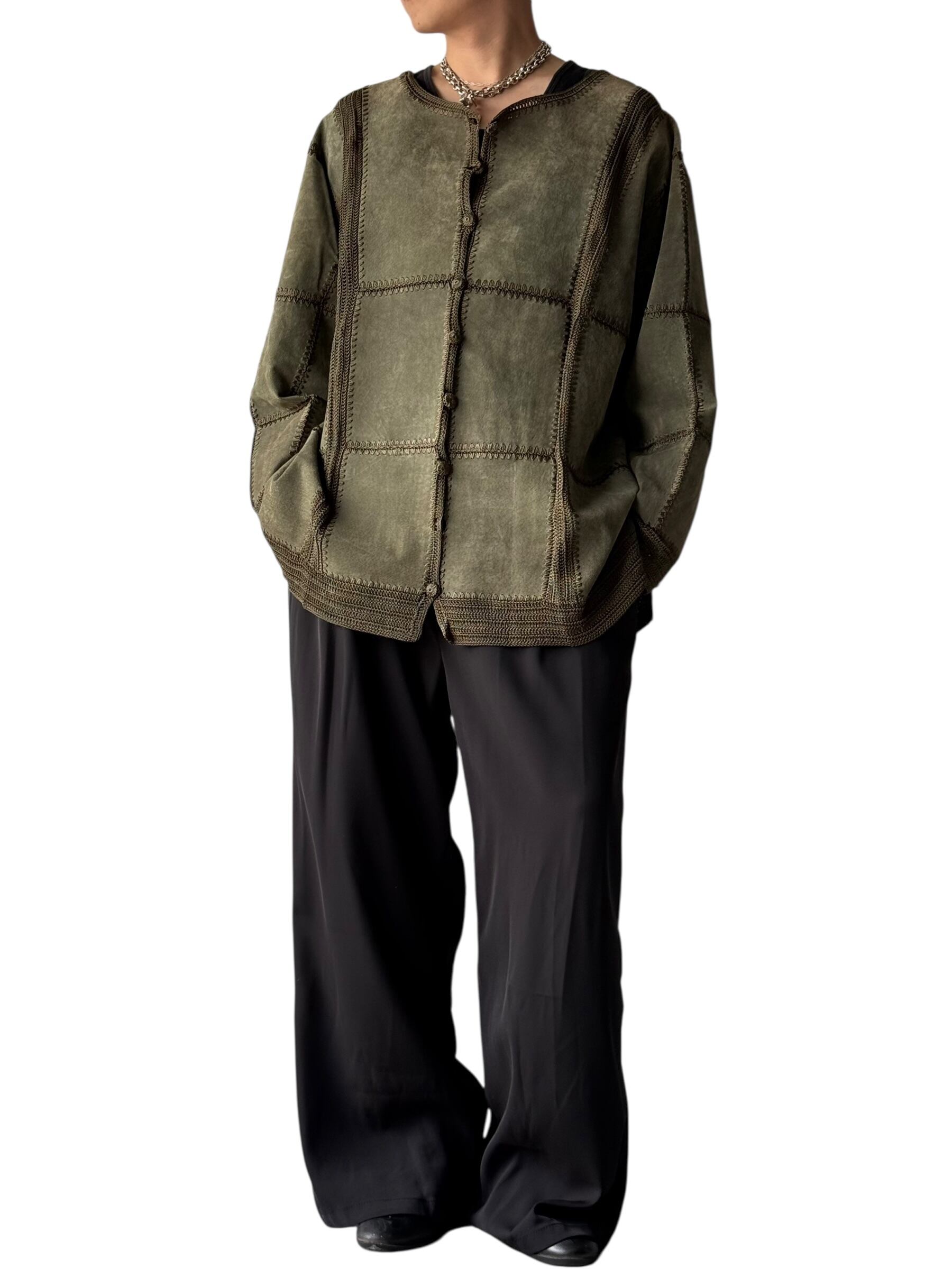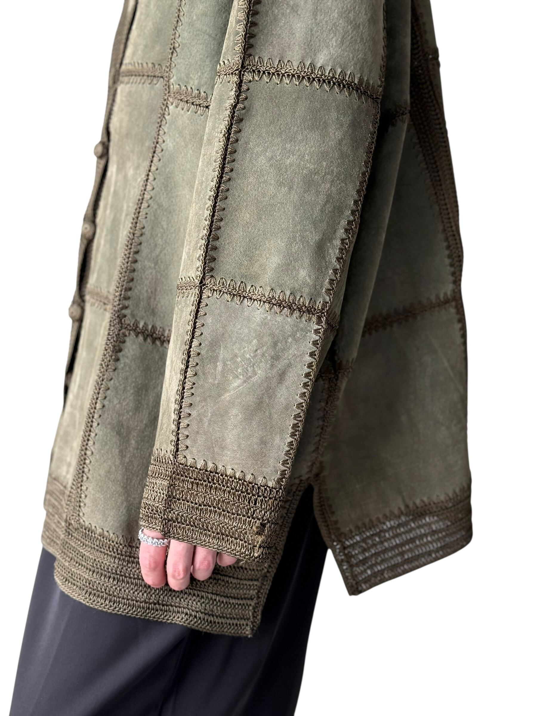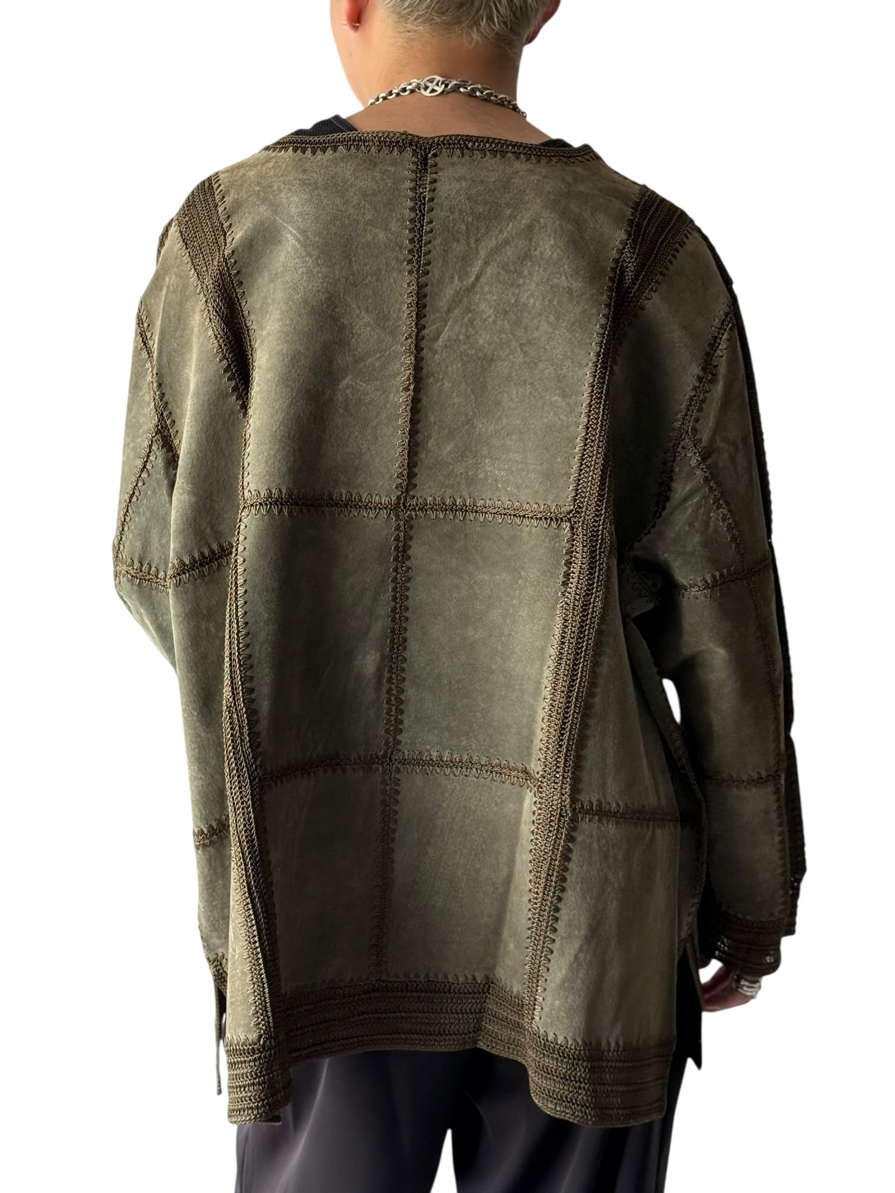 【CBO NEWYORK】 Leather Crochet Design Panel Jacket