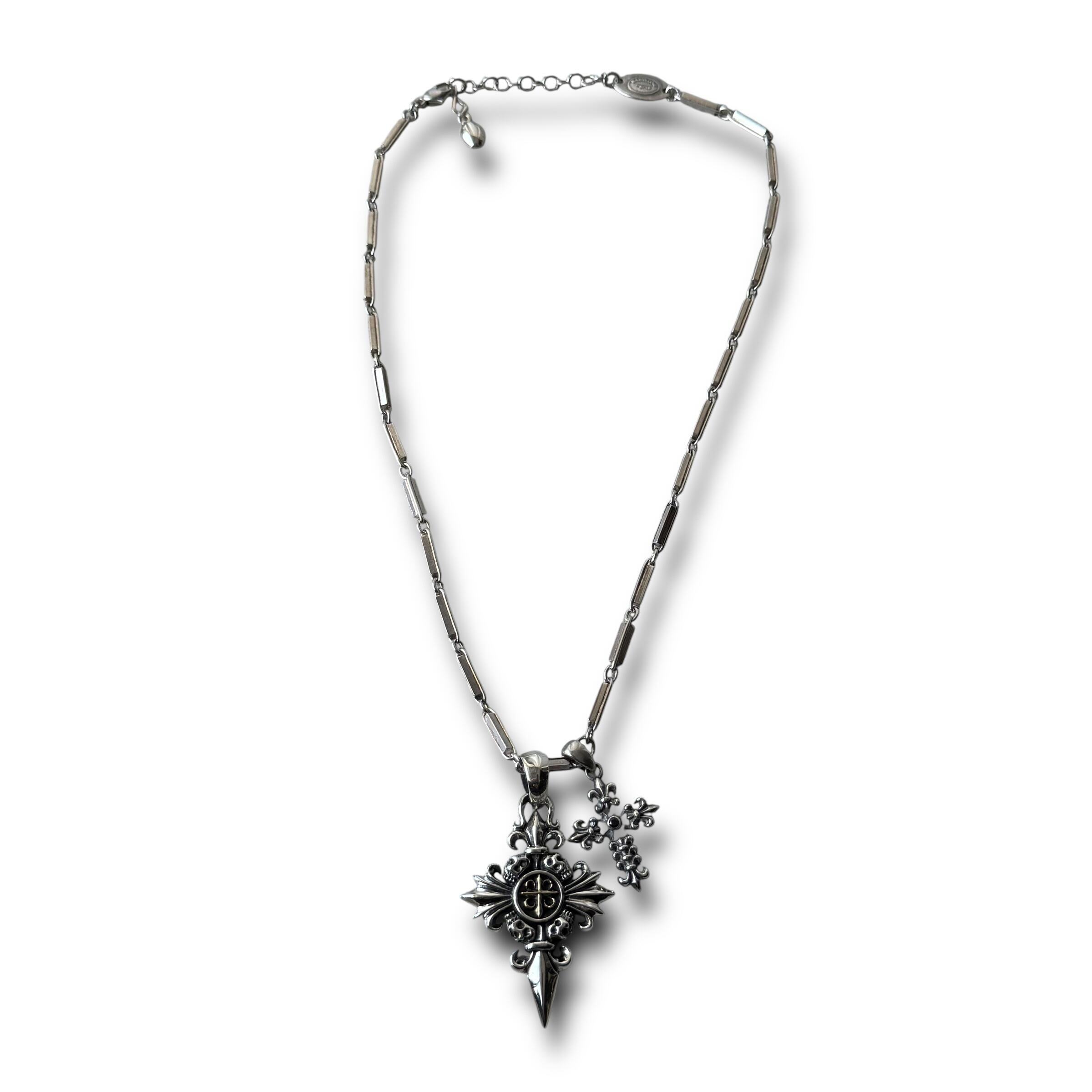 flare cross dagger motif design necklace