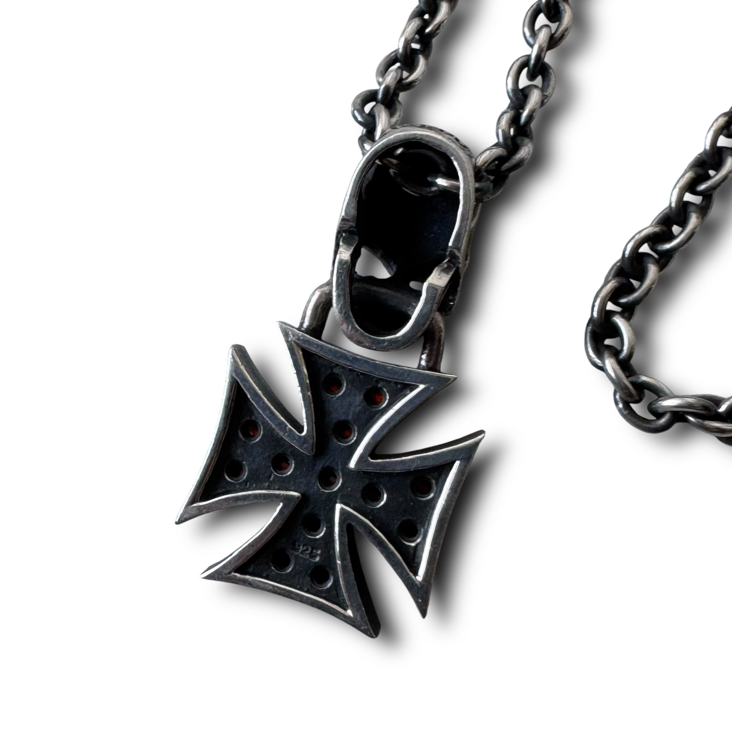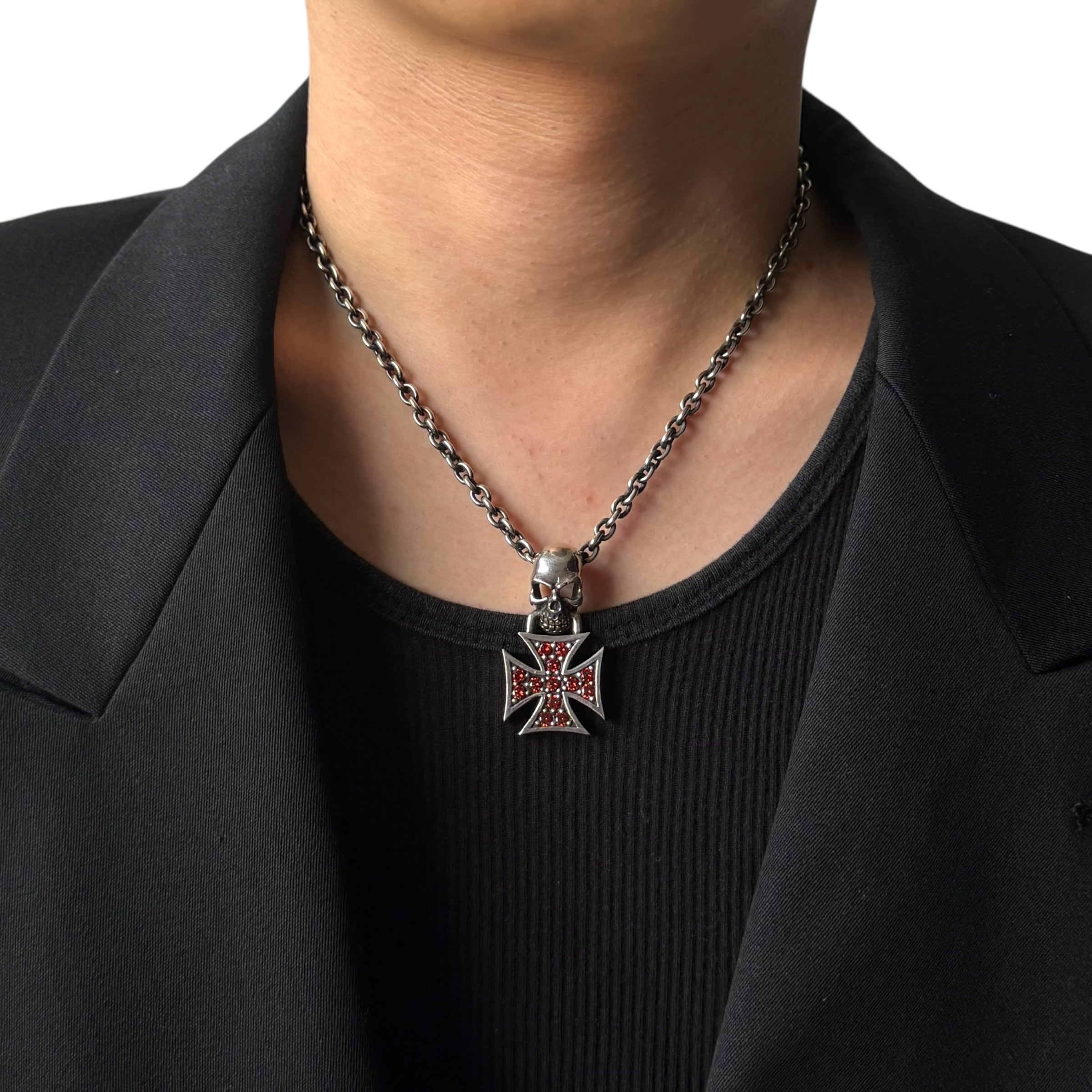 インパクト抜群な髑髏に人気のアイアンクロスのモチーフがチョーかっこいいい最強のシルバーネックレス✨✨