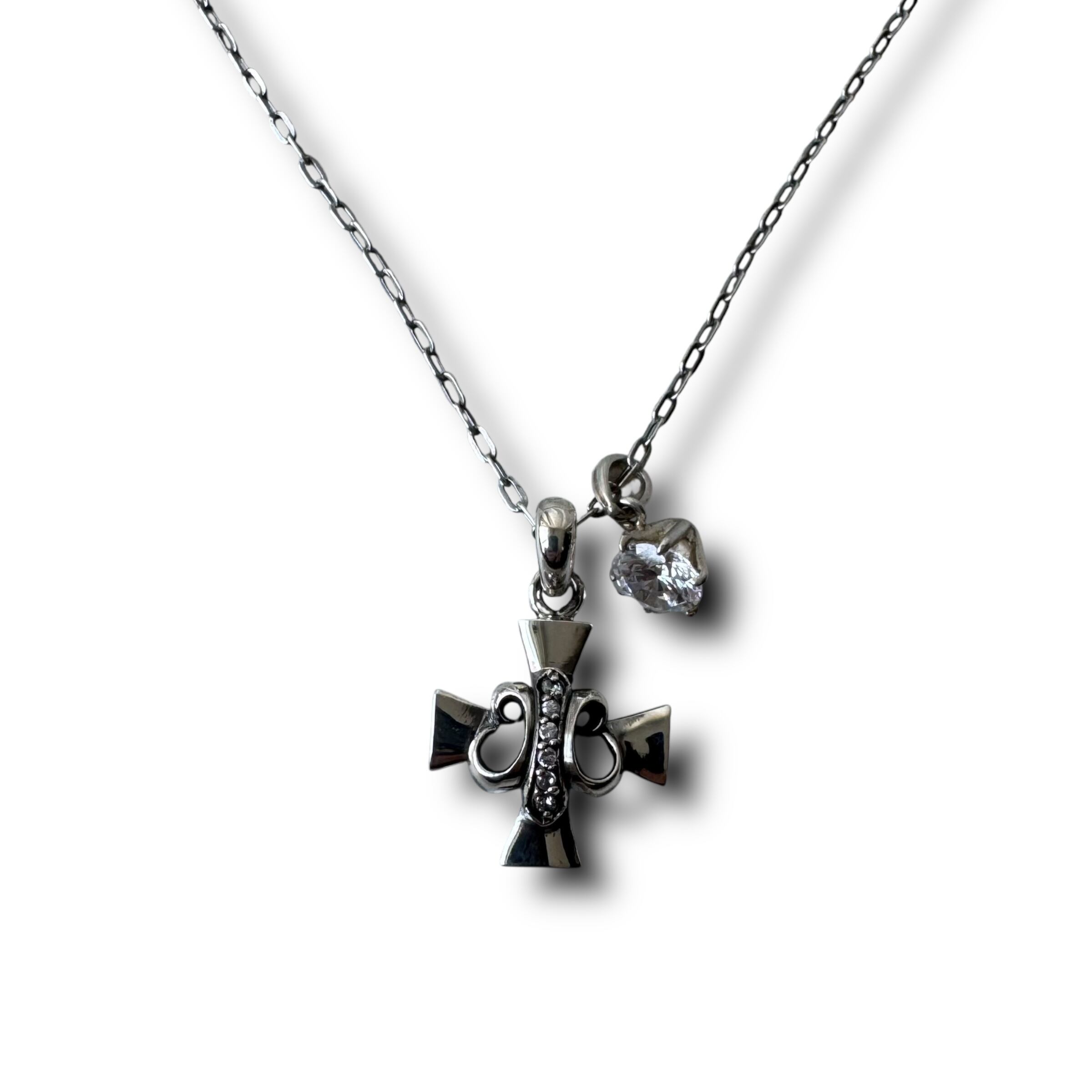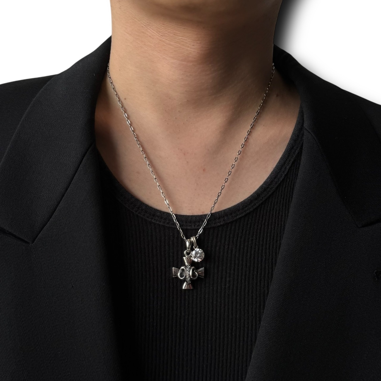 ♾vtg sv jewelry♾ iron cross flare motif cz design double top necklace sv925